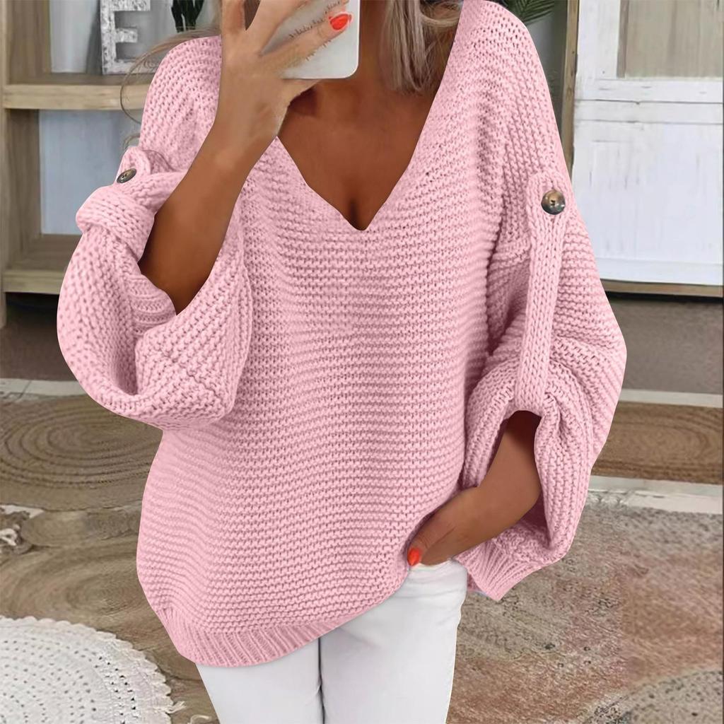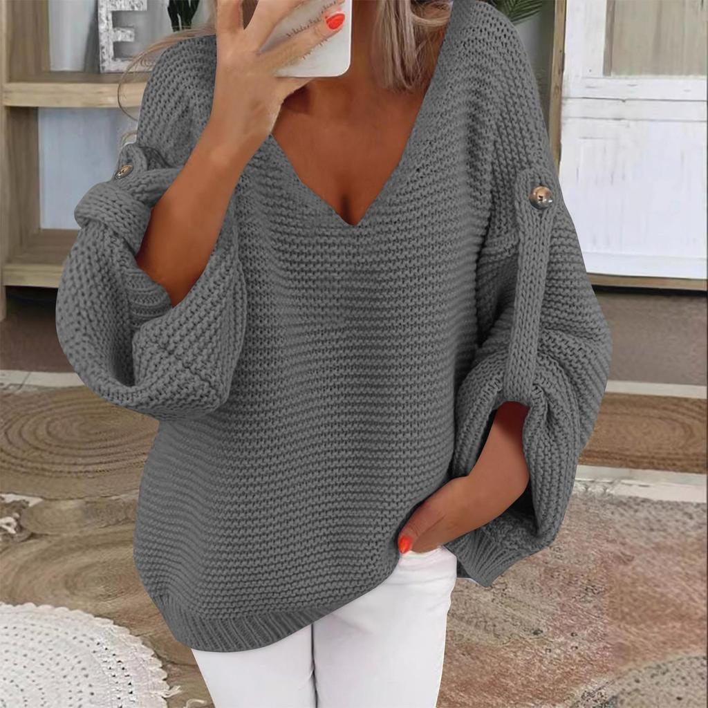Женский модный повседневный пуловер с длинным рукавом и зимний свитер с V-образным вырезом и длинным рукавом