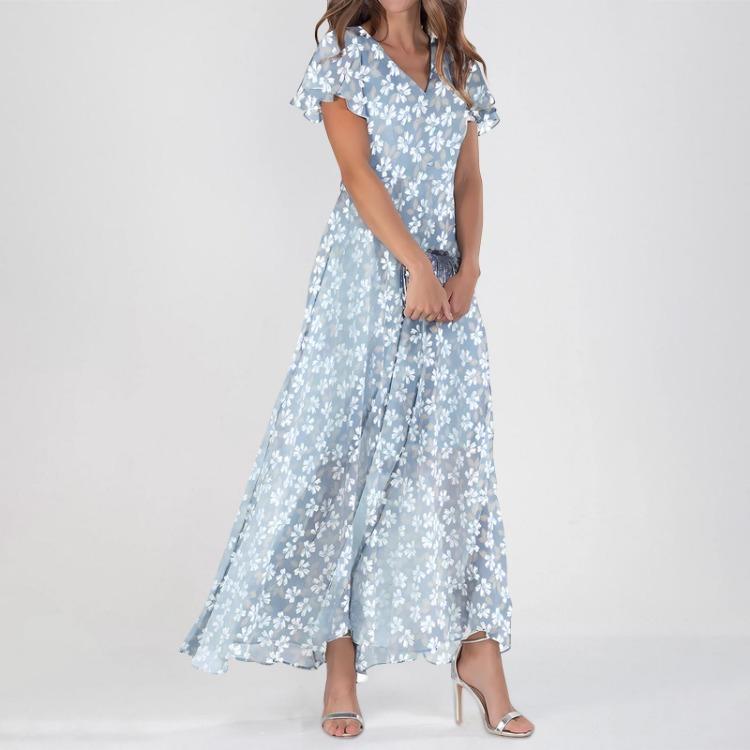 Женские летние платья Повседневные платья макси с короткими рукавами Милые макси-платья с цветочным принтом Платья для гостей свадьбы Шифоновые струящиеся платья