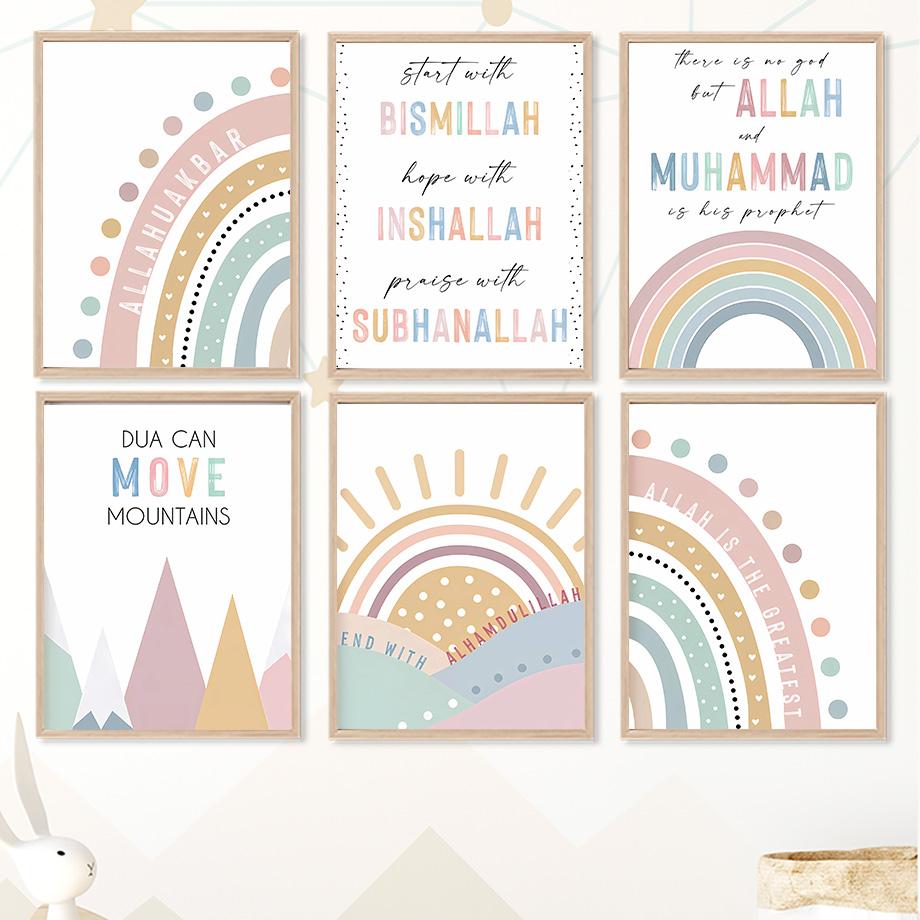 Горное Солнце Радуга Цитаты Детская Настенная Живопись на Холсте Скандинавские Розовые Постеры и Принты Картинки Декор для Комнаты Малышей Детской Спальни