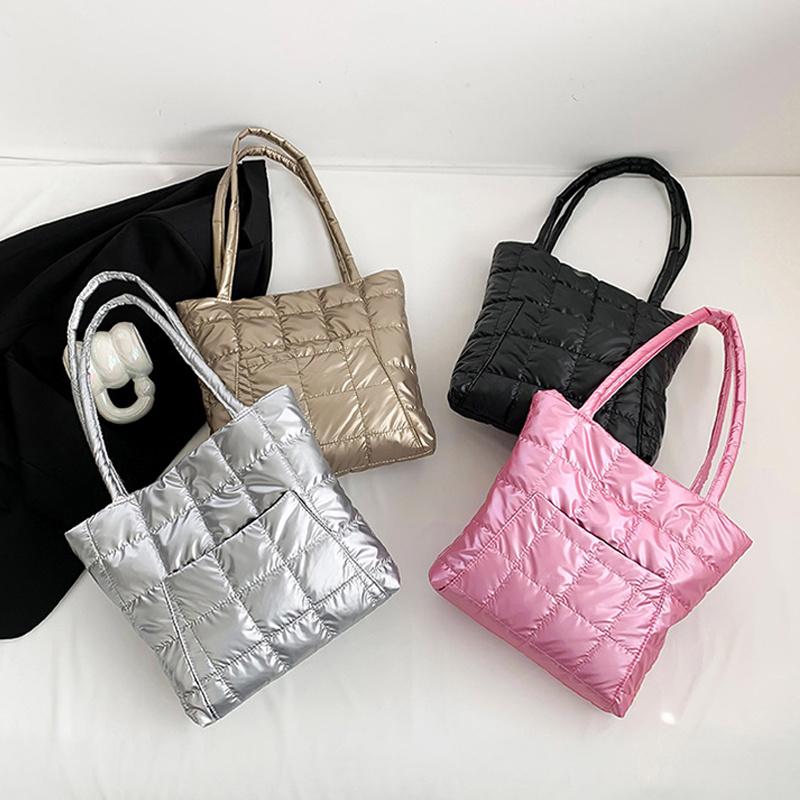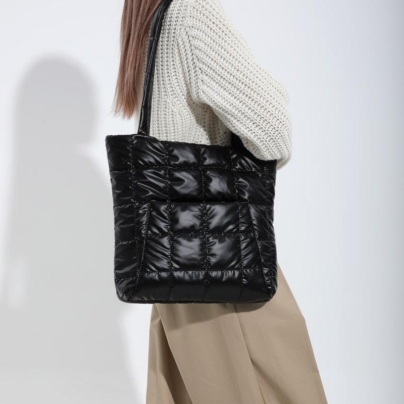 Высококачественная зимняя большая вместительная сумка-тоут, модная перьевая подбитая сумка женская подмышечная сумка стеганая однотонная сумка через плечо