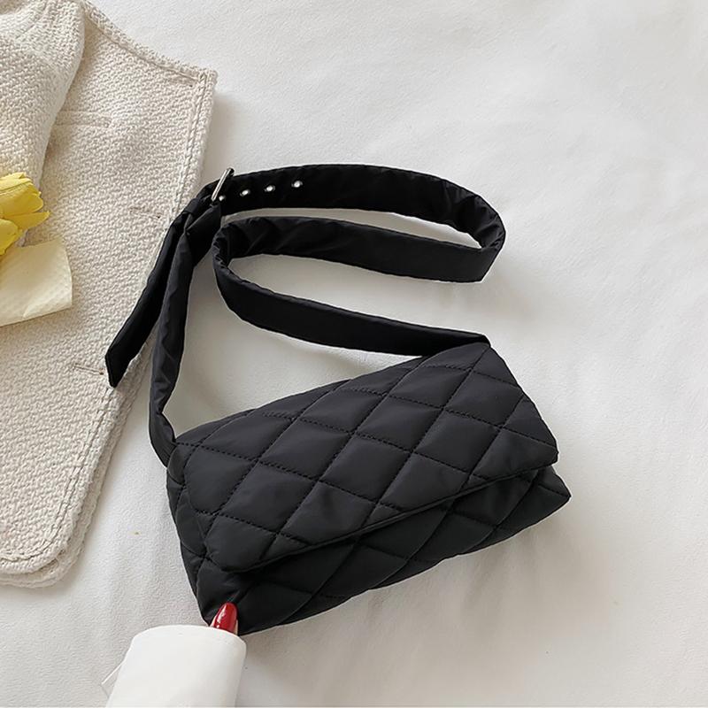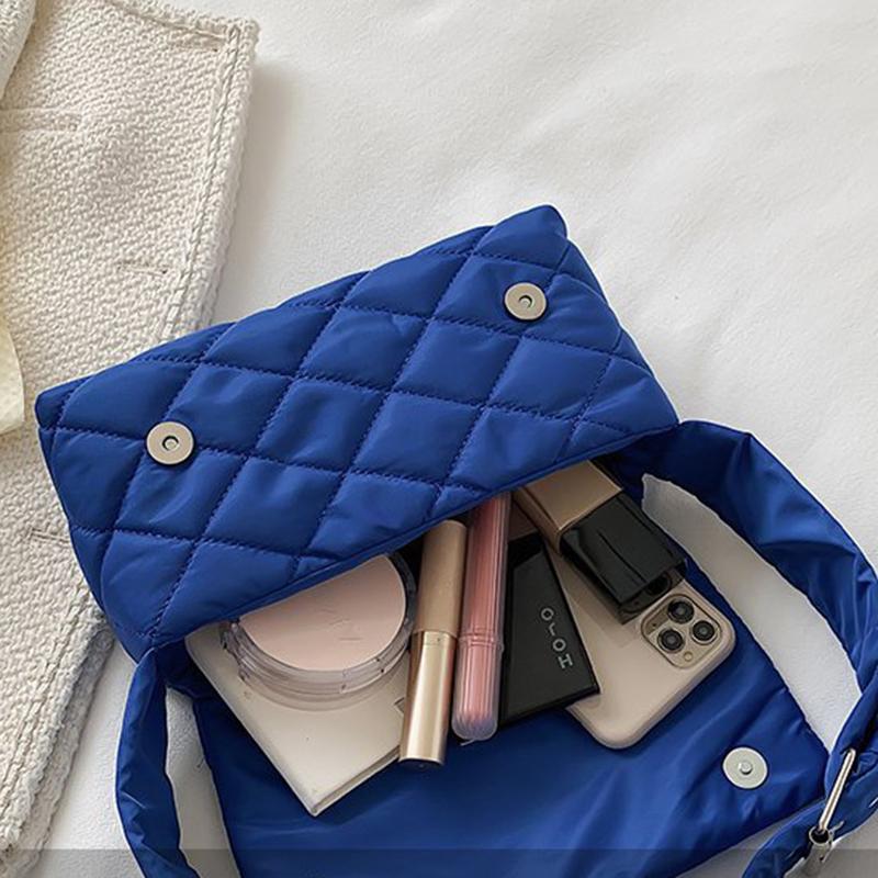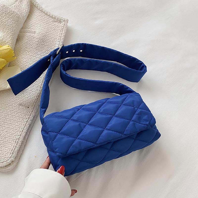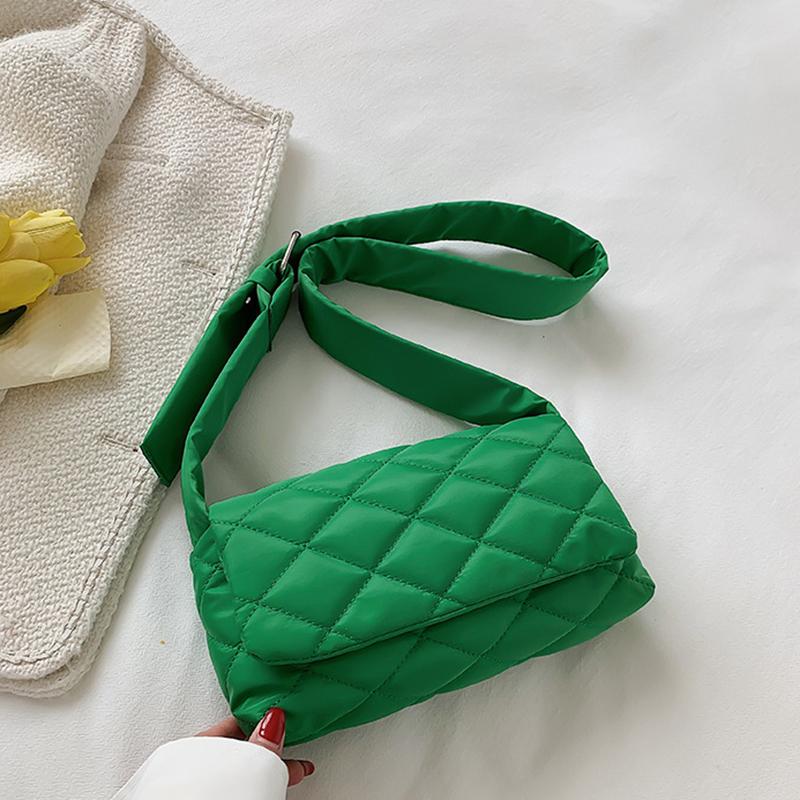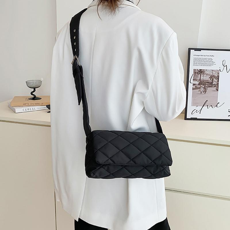 Зимняя нейлоновая сумка с ромбом, модная хлопковая однотонная сумка через плечо с клапаном на пуху