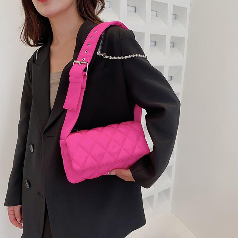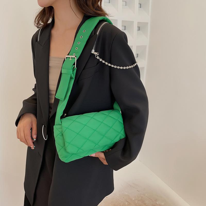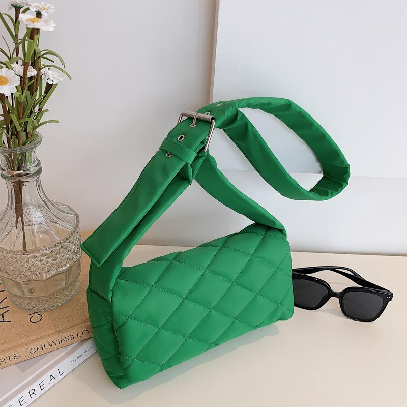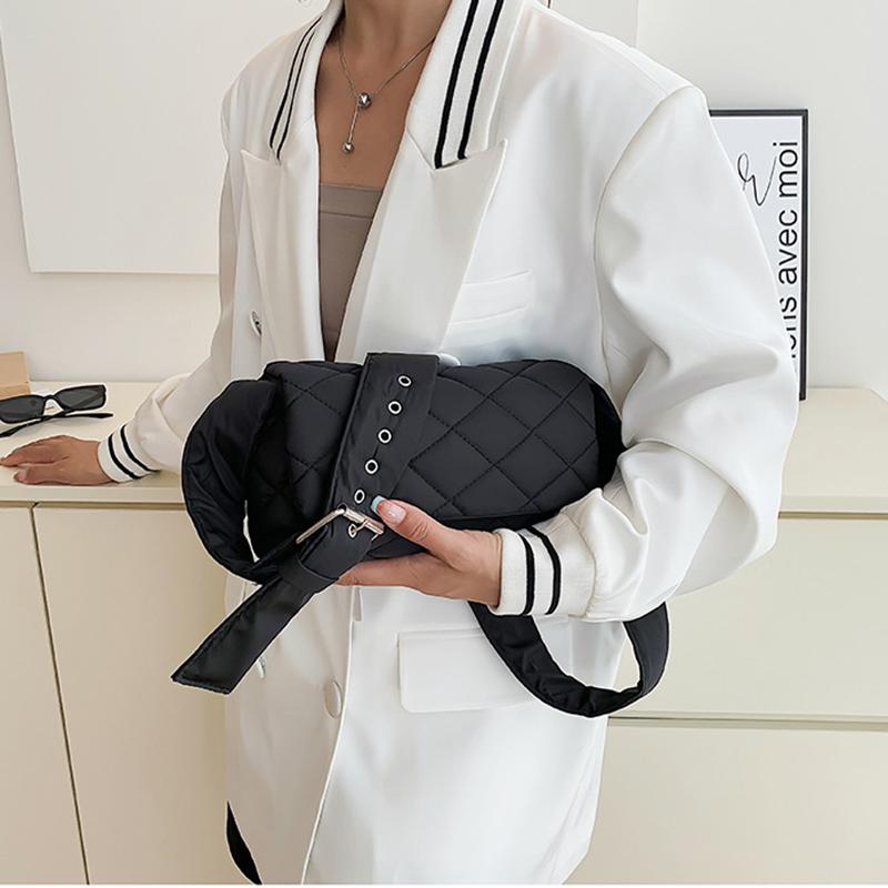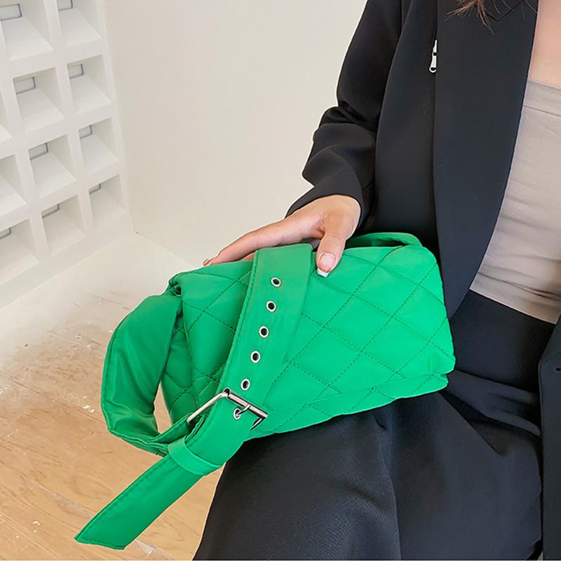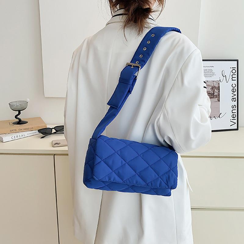 Зимняя нейлоновая сумка с ромбом, модная хлопковая однотонная сумка через плечо с клапаном на пуху