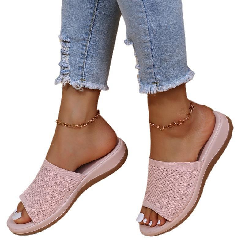 Женские сандалии 2025 Дышащие вязаные летние сандалии на низком каблуке Тапочки Повседневная обувь Zapatos Mujer Комфортная летняя обувь Женская