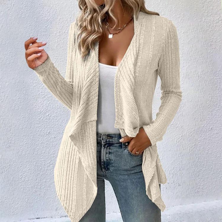 Женская одежда Однотонный вязаный кардиган, повседневный свитер с открытым передом и длинными рукавами