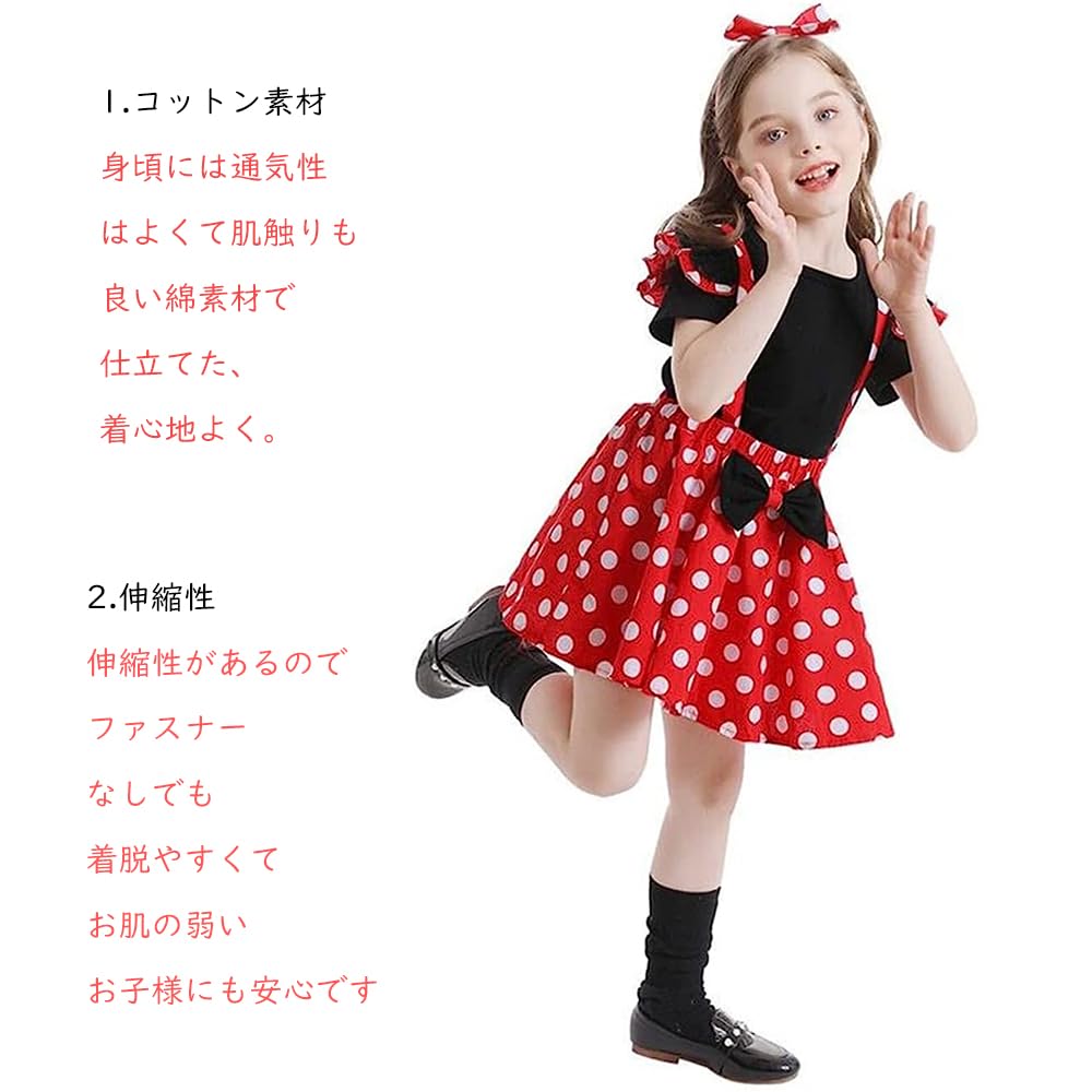 [Стань Минни Маус] Это костюм для детей популярного персонажа «Минни Маус». Платье с оборками в красный и белый горошек и головной убор очень милые! Одевайтесь мило и станьте Минни!