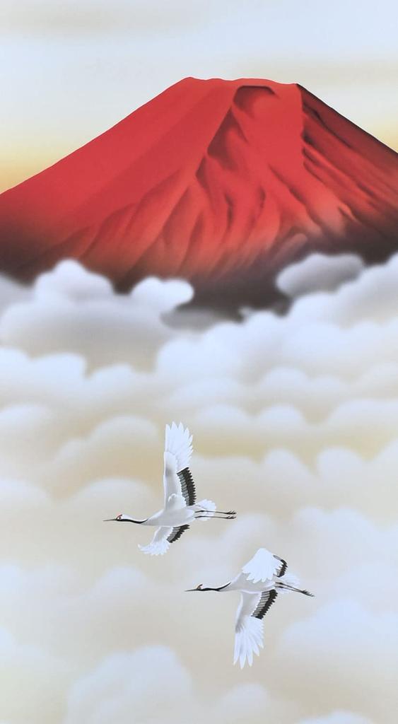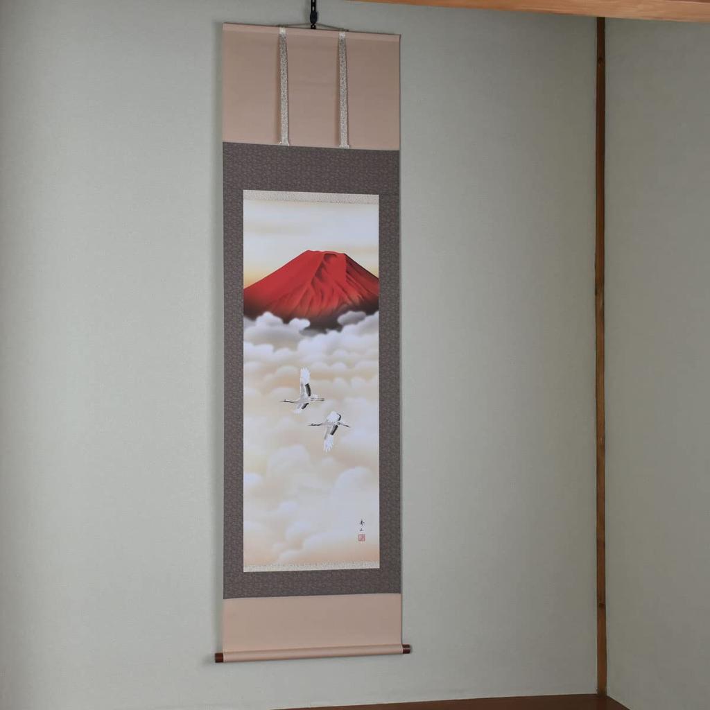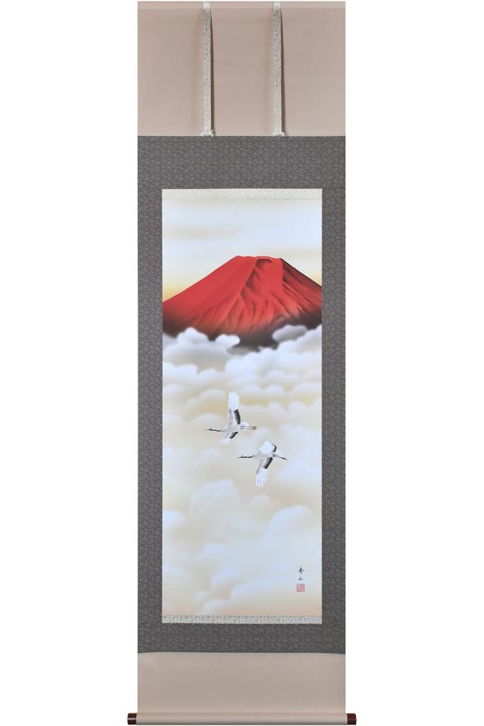 Галерея Солнечный Город Подвесной свиток Красная Фудзи и два журавля работы Сюдзана Судзумуры 150 см х 54,5 см