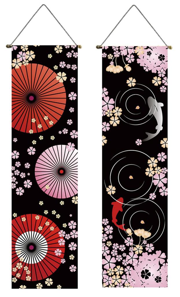 Гобелен Вишневый цвет Ночной вишневый цвет Весна Карп Японский зонтик Украшение Тонкий гобелен Подвесной свиток Набор из 2 Настенный Настенный