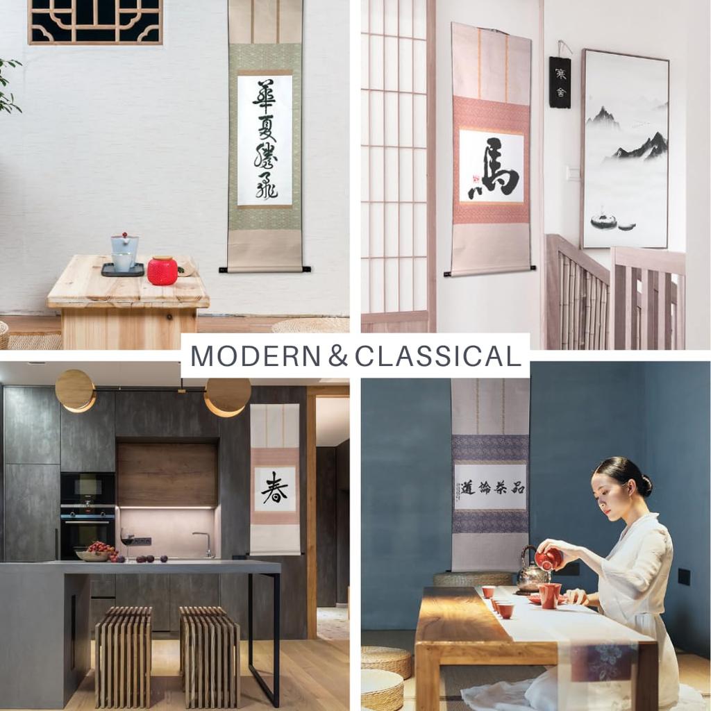 [Простой в использовании] Вы можете писать прямо на основной бумаге (Работа) или вставьте свою работу в пустую часть. Это удобный подвесной свиток, который можно использовать для детских каллиграфических работ и художественных выставок.. Если ты можешь написать хорошую работу, сделай из нее подвесной свиток и выставляй ее!