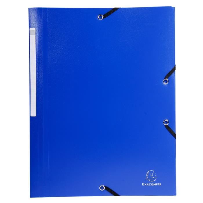 Chemise - EXACOMPTA - 3RAB.+ ELAST. - PP 0,5mm - Bleu foncé - Lot de 10