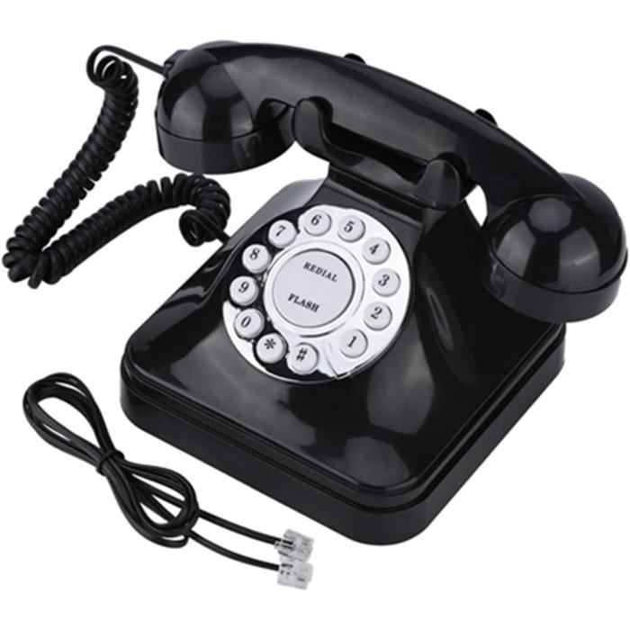 Téléphone Fixe - SXHLSELLER - Rétro Noir - Multifonctionnel - Base Antidérapante - Sonnerie Traditionnelle