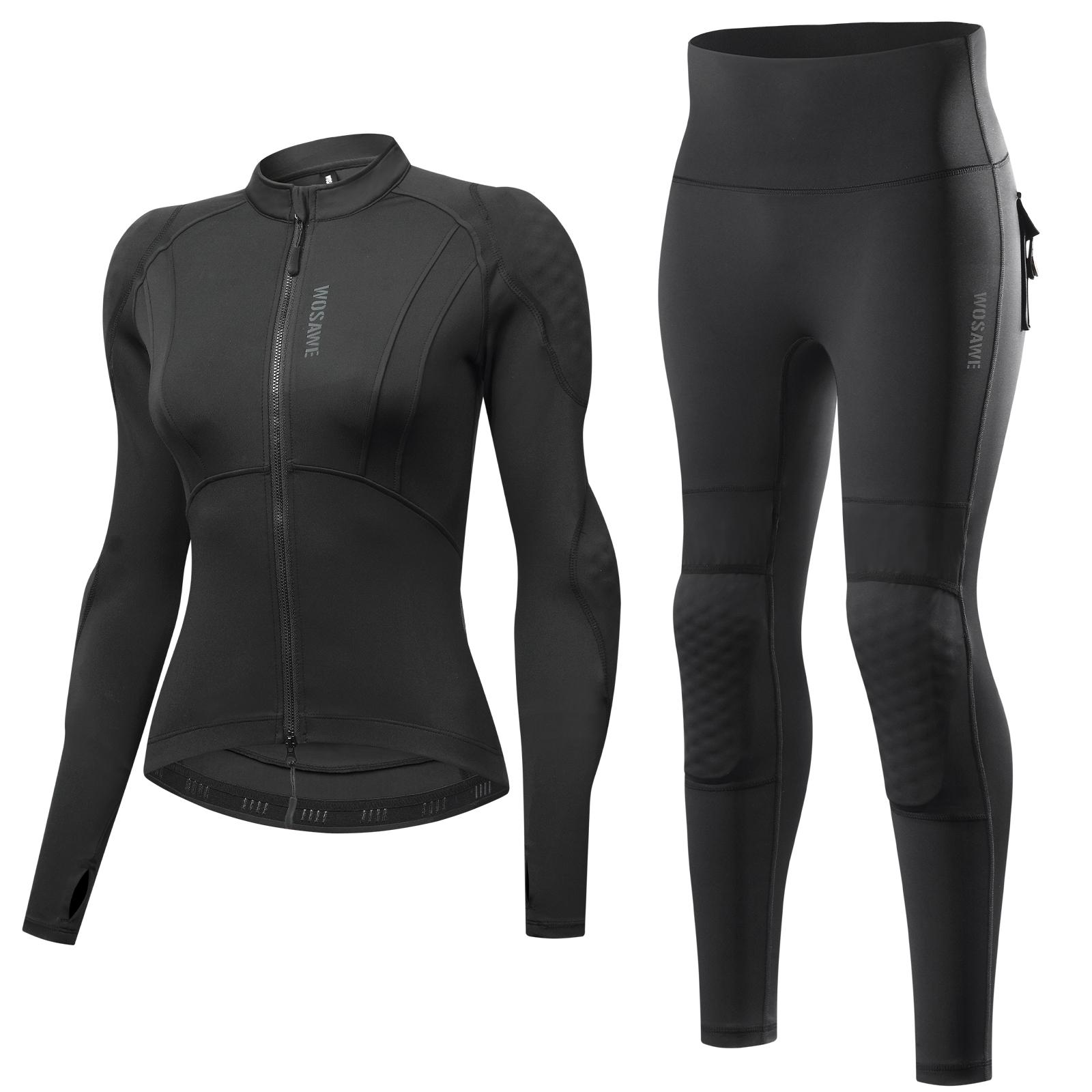 В коплект входит: Налокотники*1 пара, Наколенники*1, Наплечники*1 пара, Защита спины*1 шт., Женская куртка с мягкой защитой*1, Спортивные эластичные брюки*1