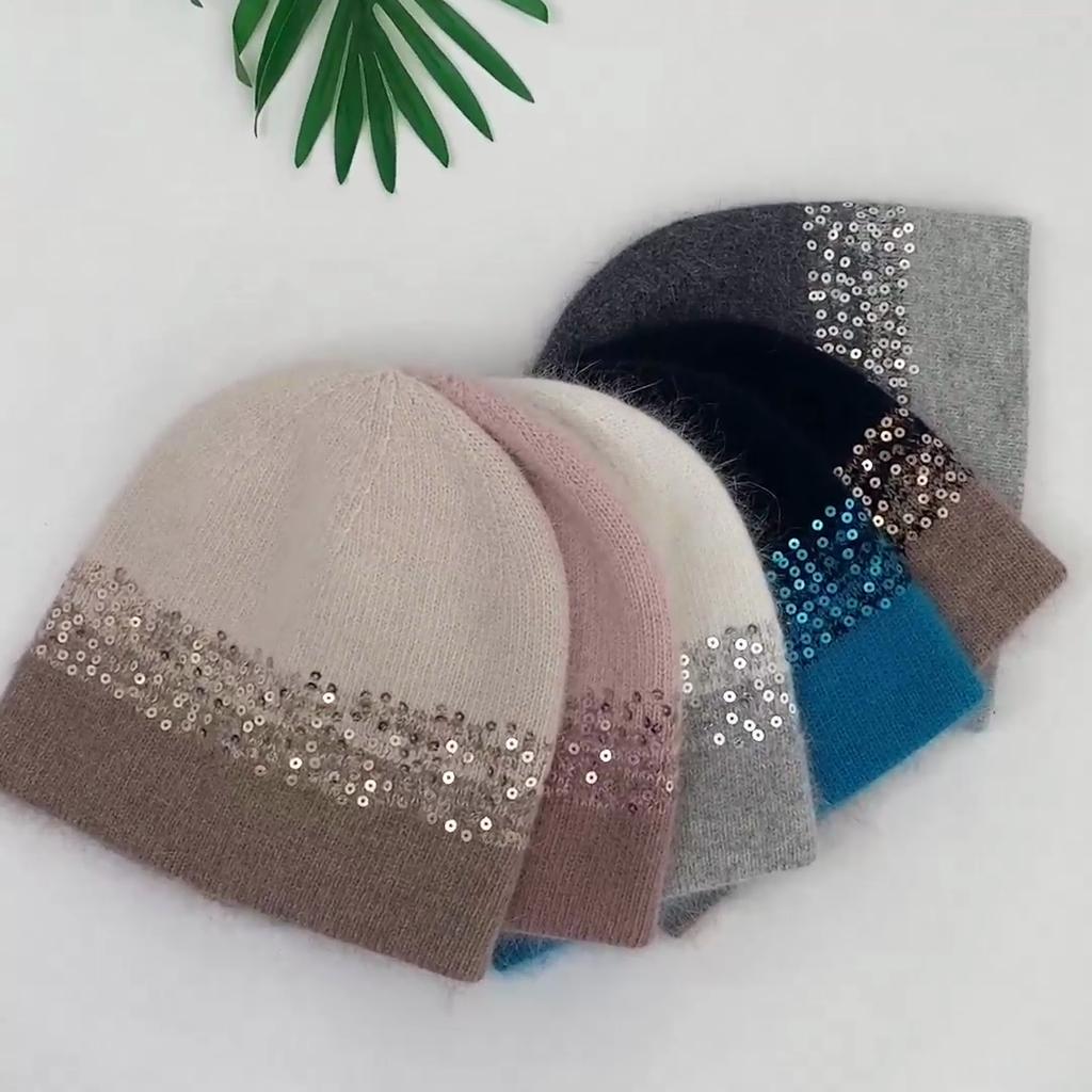 SOMALER Зимние шапки для женщин Теплая вязаная шапка из ангоры Модная шапка-бини с пайетками Толстая длинная шапка-ушанка из кроличьего меха Шапка-череп Шапка-боннет — купить товар онлайн с бесплатной доставкой по всему миру!