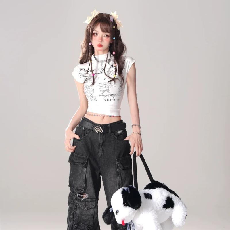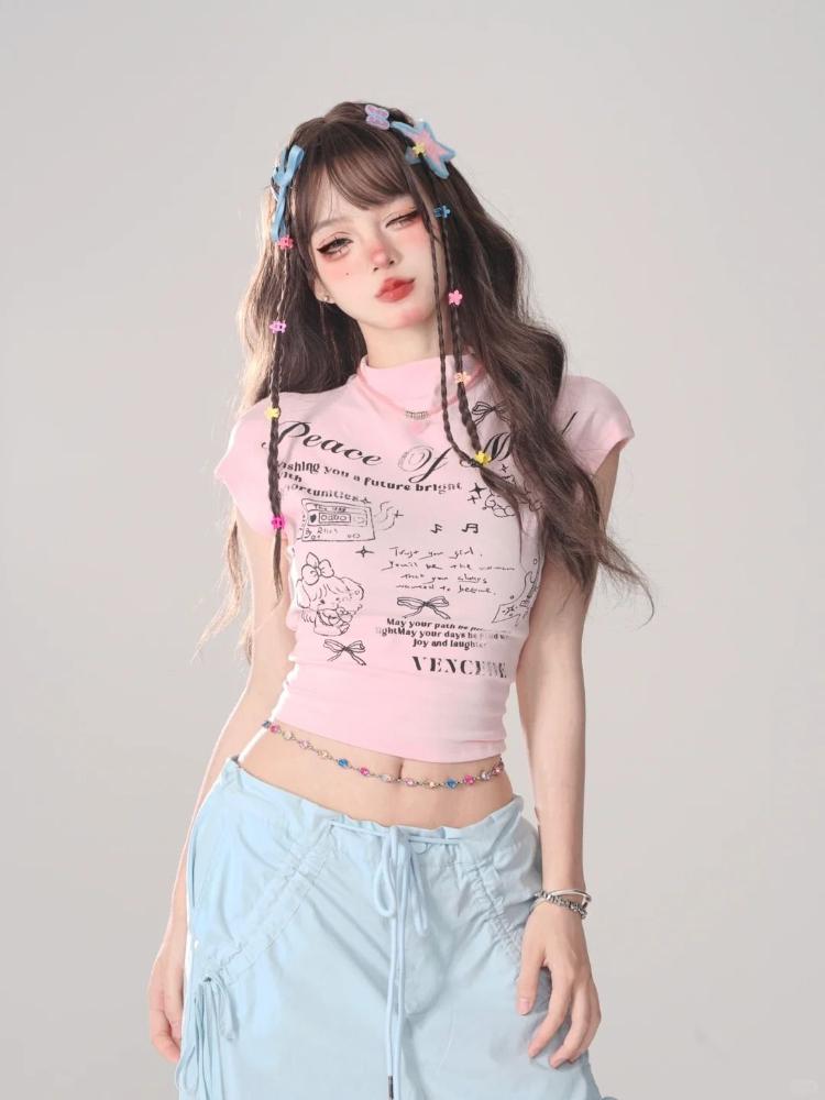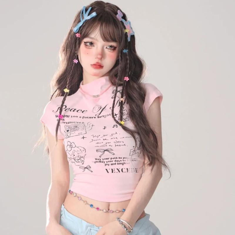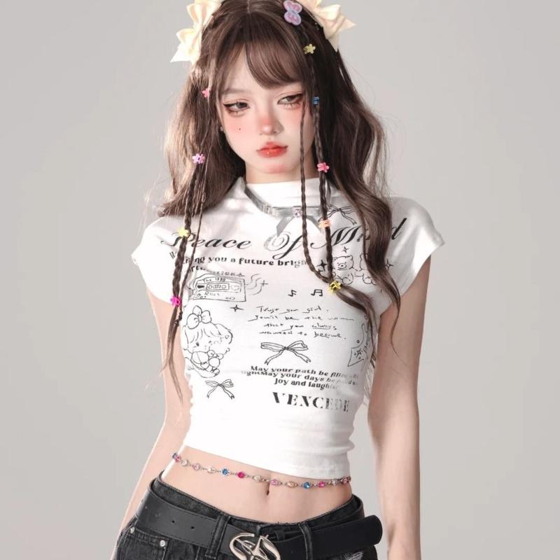 Женские топы Y2K с принтом, футболки для женщин, сексуальные футболки, дизайн для контроля живота, модные женские футболки, топы с мультяшными буквами, футболки с коротким рукавом, повседневные футболки
