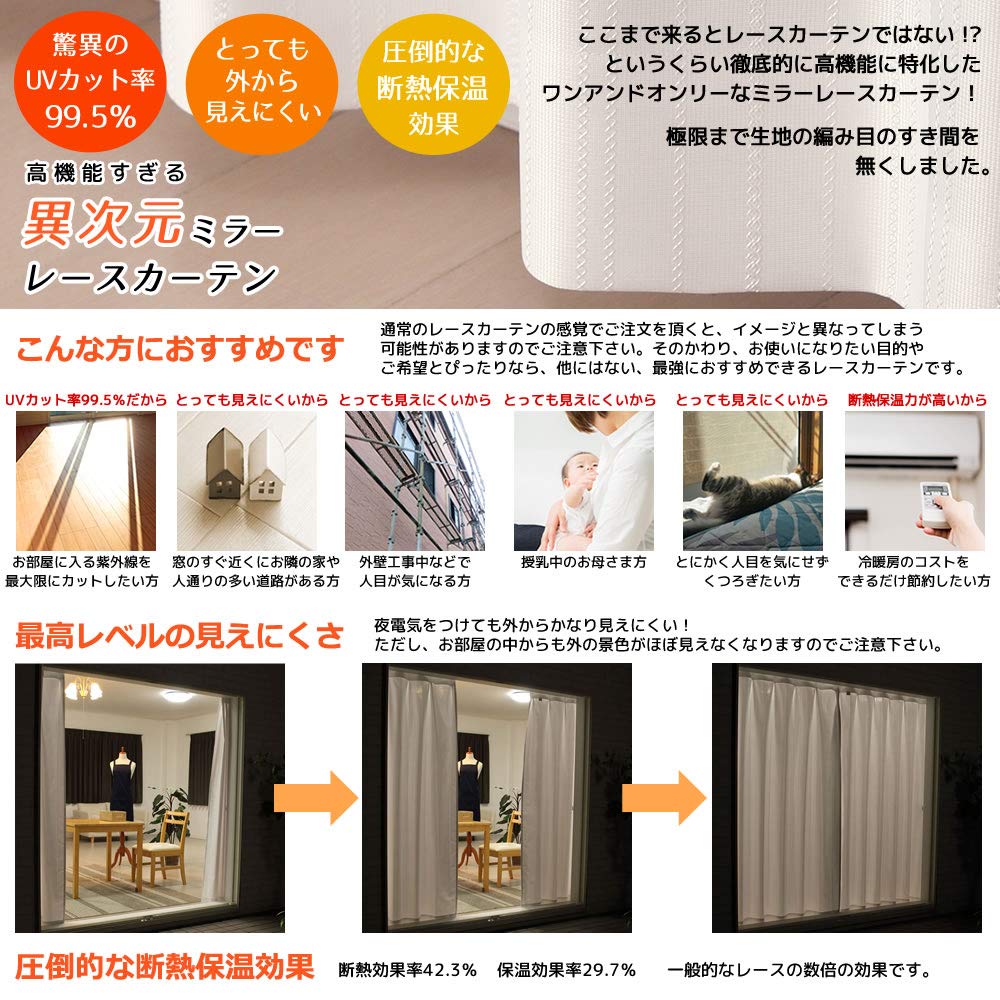 Степень защиты от УФ-лучей 99,5% (Испытательный центр Фукуи, Центр технологии качества текстиля Японии, Общественно полезный фонд, Метод испытаний: Измерение эффективности защиты от УФ-излучения, 26 октября 2018 г.) Очень трудно просвечивает. Превосходный эффект теплоизоляции, теплозащиты и удержания тепла в несколько раз превышает эффект обычной кружевной ткани.. Уникальная кружевная занавеска с такой высокой функциональностью, что можно усомниться, кружевная ли она вообще.. Мы максимально устранили зазоры в плетении. Если это идеально соответствует вашей цели и желаниям, это самая прочная кружевная занавеска, которую мы можем рекомендовать (пожалуйста, обратите внимание, что это отличается от ощущения обычного кружева). Цвет чисто белый. Даже если включить свет ночью, снаружи видно довольно плохо, поэтому это рекомендуется для защиты приватности.. *Пожалуйста, обратите внимание, что изнутри комнаты почти ничего не будет видно.. Изображение товара - это комплект из 2 штук, шириной 100 см х высотой 176 см. Карниз в комплект не входит. ◆Обратите внимание, что цвет может выглядеть по-разному в зависимости от вашего монитора и окружения.