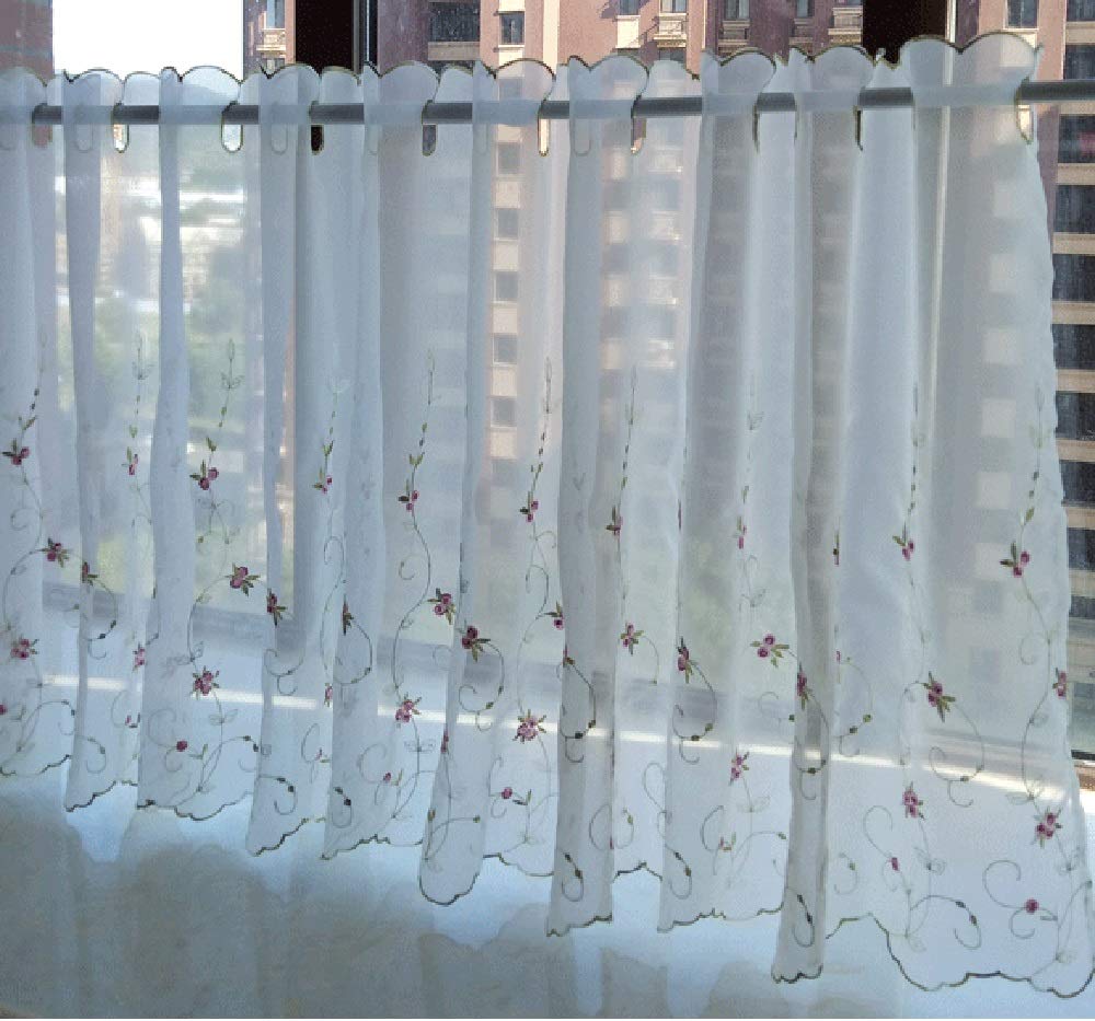 Пасторальные белые кружевные шторы с цветочным узором и зелеными листьями, хорошие кафе, короткие, 9 размеров на выбор для маленького кофейного окна, 1 ширина 170 см х длина 60 см