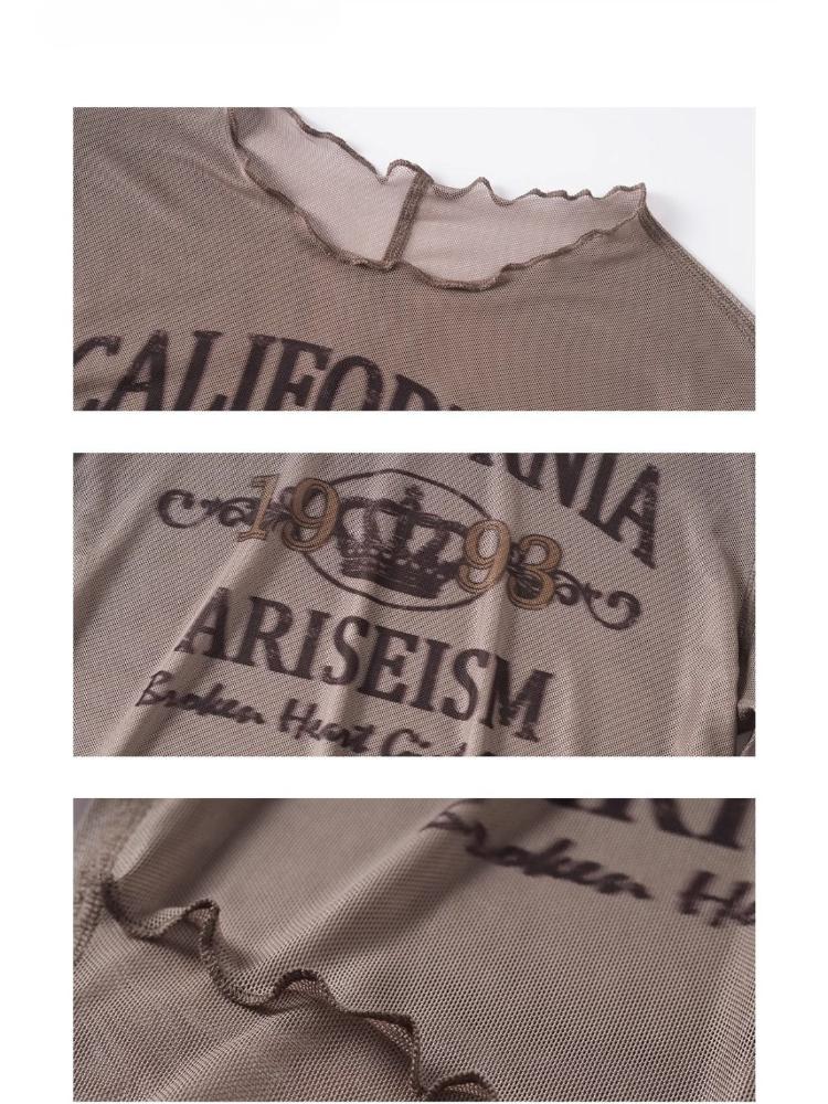 Ретро сетчатые футболки с принтом букв для женщин, сексуальные футболки с длинным рукавом, топы, футболки Y2K для девушек