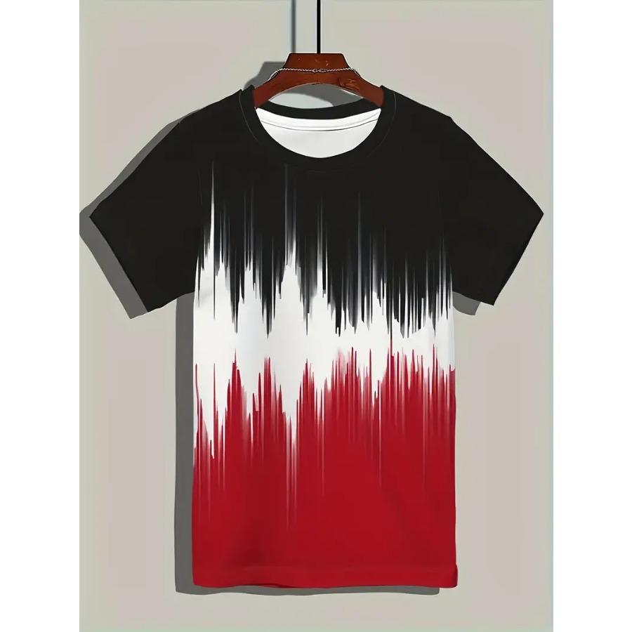 Футболка с градиентным цветом, летняя мужская футболка, узор с горами, мужской топ с короткими рукавами и круглым вырезом, подходит для активного отдыха