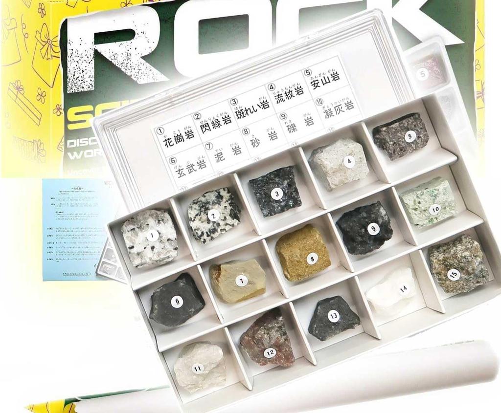 15 образцов горных пород сопровождаются простыми, легкими для понимания объяснениями о породах.