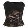 Странный стиль моды Puss Маленький сексуальный кружевной шов Элегантный облегающий Показывающий стройность Черный прозрачный жилет-топ-труба