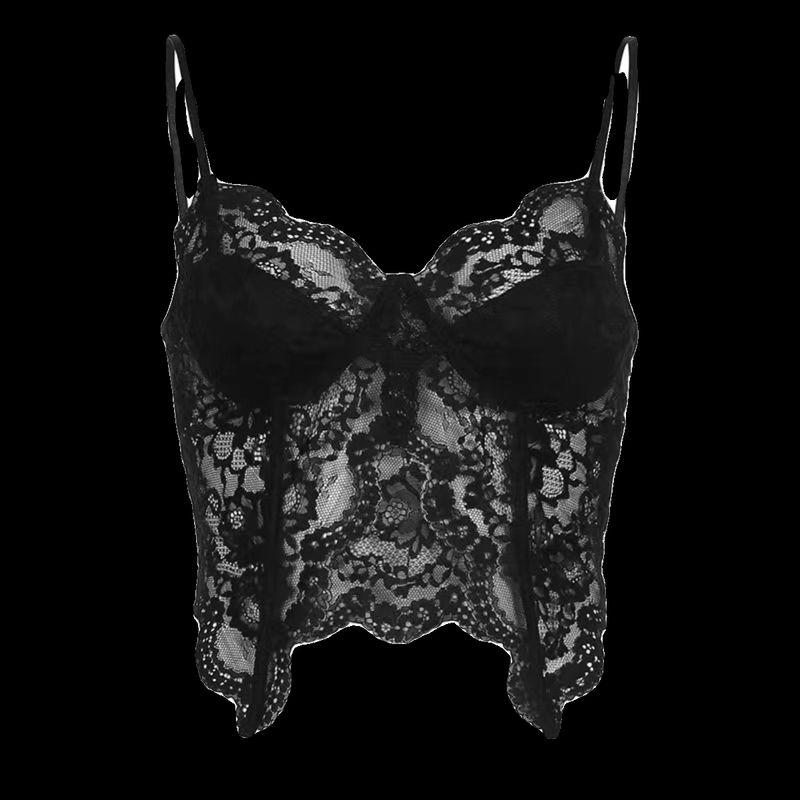 Дизайн в стиле моды Сексуальная сексуальная кружевная прозрачная майка Черная Легче всего сочетать Укороченный топ в форме бабочки Короткий корсет