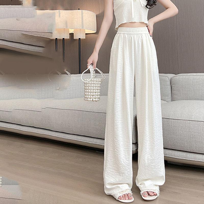 Женские весенне-летние текстурированные брюки кремового цвета в стиле ленивой небрежности, повседневные, универсальные, драпирующиеся, широкие