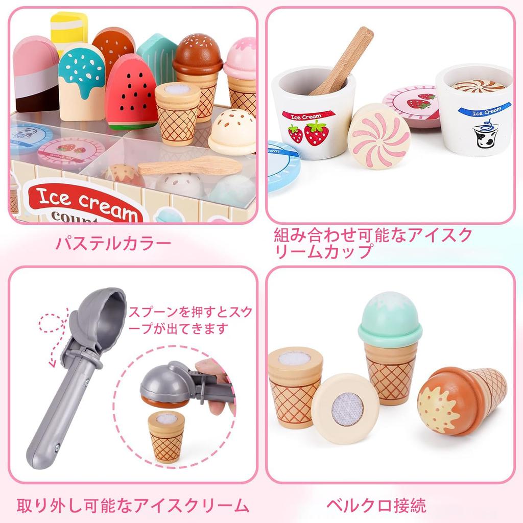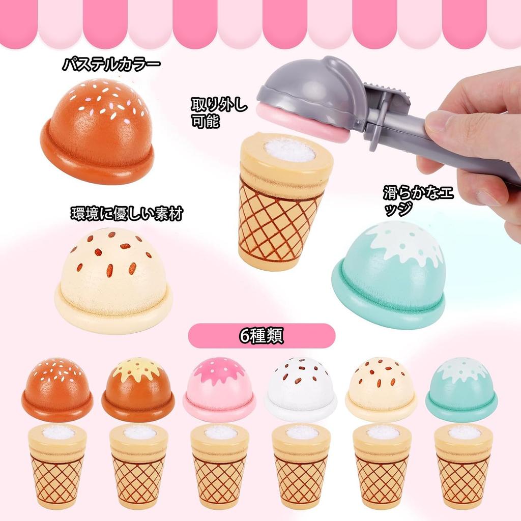 【Безопасный и прочный】Набор для ролевых игр для малышей 3-5 лет изготовлен из натурального дерева, нетоксичных материалов и нетоксичных красок на водной основе, с закругленными углами и без заусенцев, поэтому ваш ребенок не поранится во время игры. Этот набор игрушечной еды для детской кухни более экологичен, чем пластиковые наборы для ролевых игр, прочный и безопасный, и может выдержать годы интенсивного использования.. Эта игрушка-мороженое — идеальный подарок на день рождения, подарок на Хэллоуин, рождественский подарок, подарок на День благодарения, новогодний подарок для детей от 3 лет и старше.