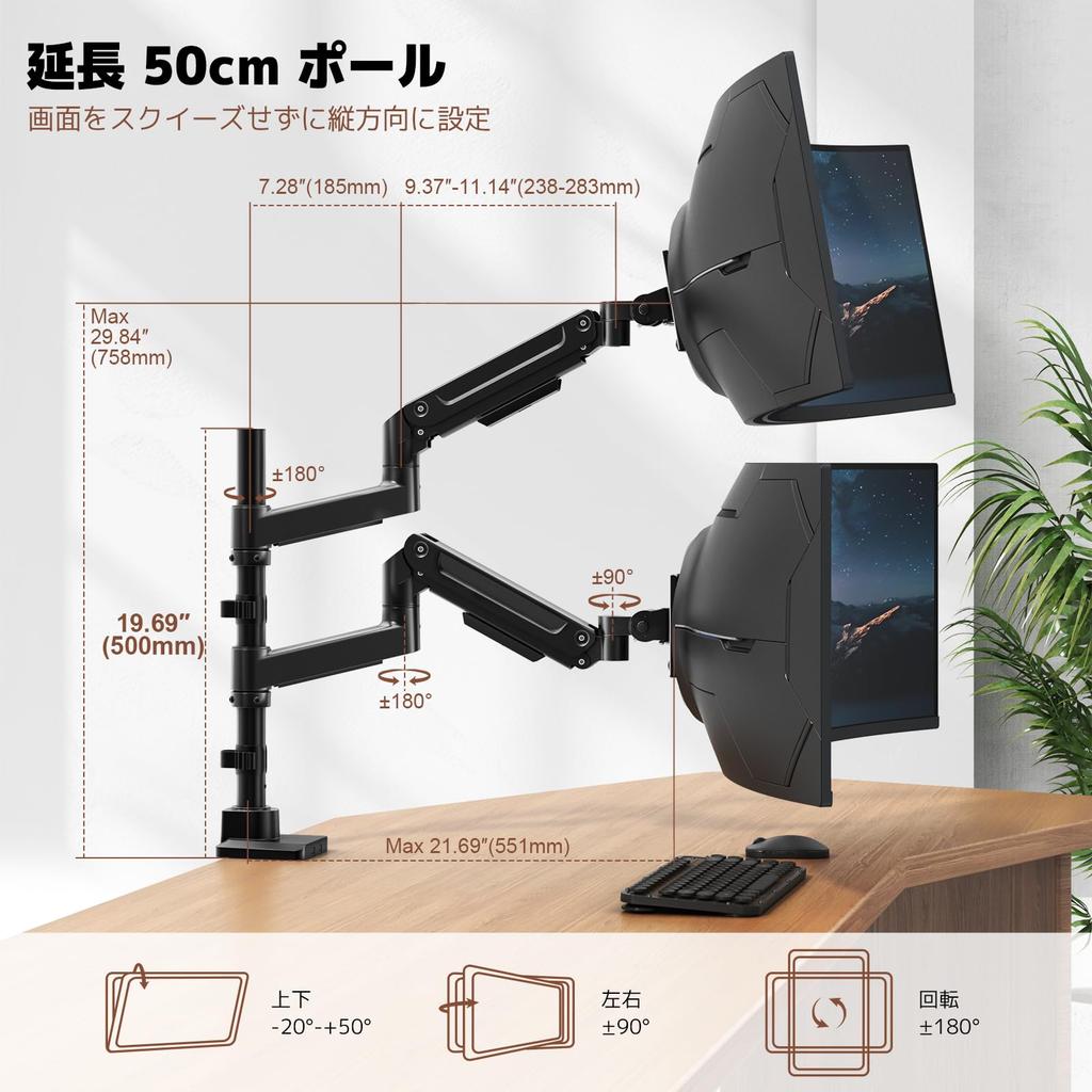 WORLDLIFT Настольный кронштейн для монитора двойной, совместимый с верхним и нижним 2 длинными стойками, грузоподъемность, тип крепления с помощью втулки, стандарт VESA, 17-49 дюймов, экраны,