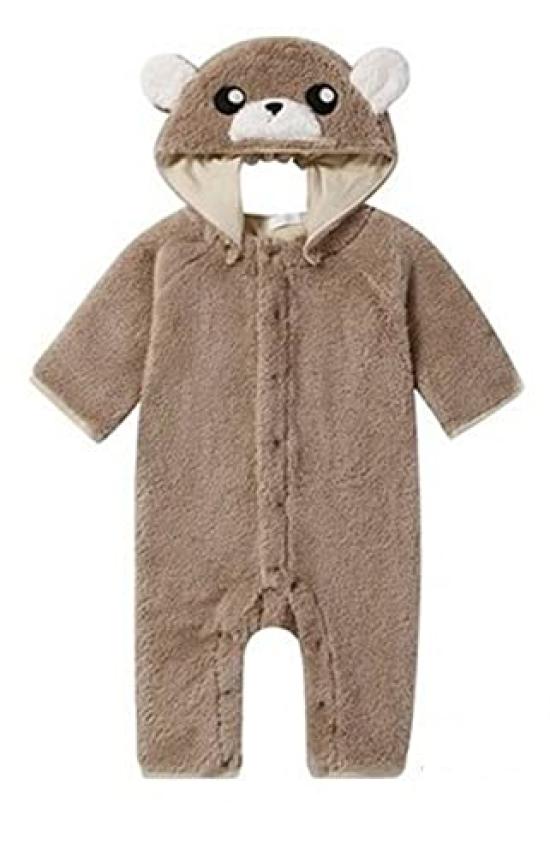 Детский модный ромпер Пушистый махровый флис Мишка Комбинезон 785002 Коричневый Размер 80