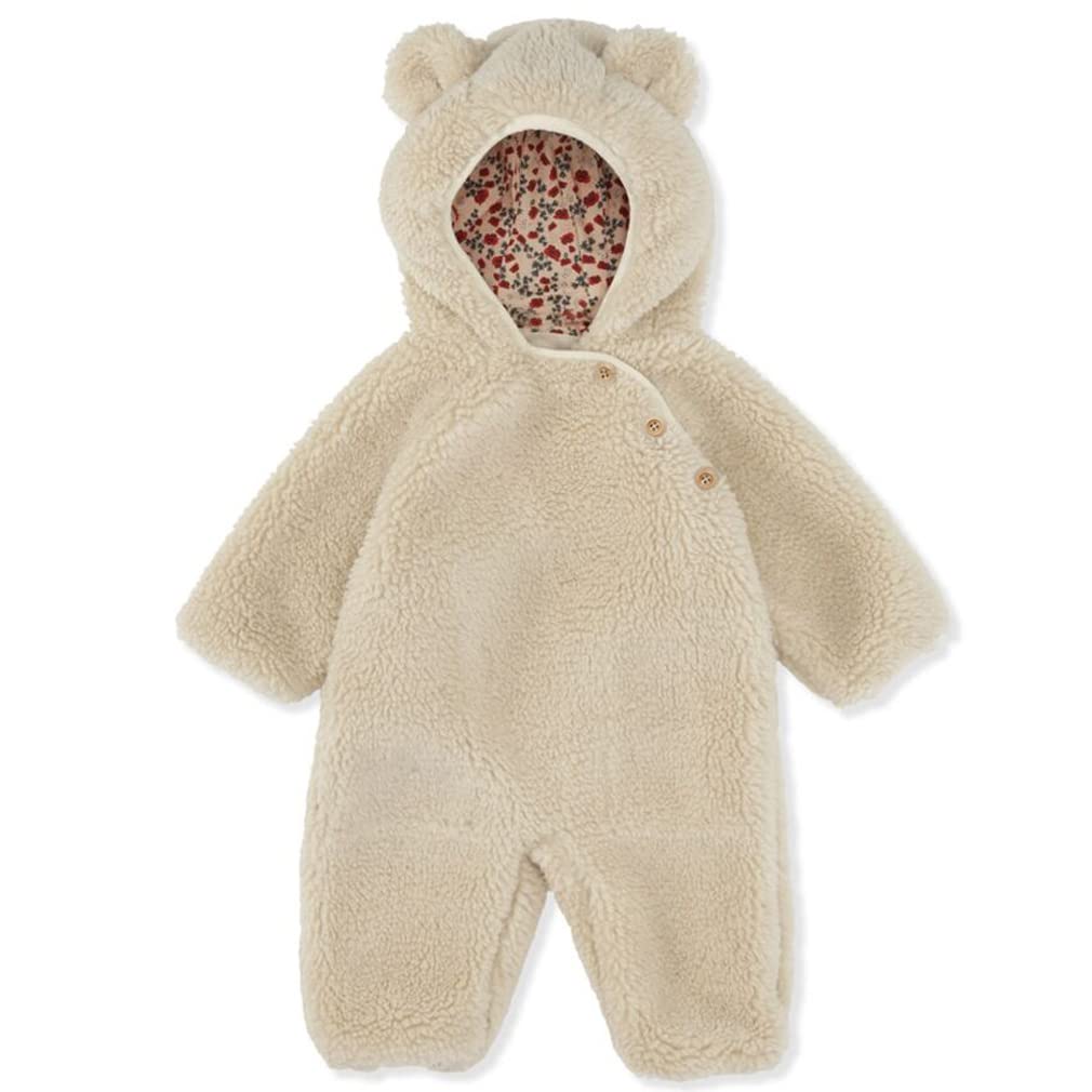 [Появляется медведь] Флисовый ромпер, который превращает вас в медведя просто надев его. Внутренняя подкладка имеет стильный цветочный дизайн, который является естественным и не слишком кричащим, но элегантным, стильным и роскошным.. Это незаменимая вещь для зимы в качестве детского джемпера и одежды для холодной погоды для маленьких детей.