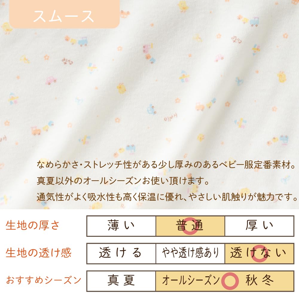 ・Гладкий игрушечный узор двусторонний все ・50см-70см ・Рекомендуемый материал для всех сезонов. ・Рекомендуется как для мальчиков, так и для девочек.. [Можно носить долго по мере роста ребенка] Можно использовать долго от новорожденного до примерно 6 месяцев. (*Период ношения является приблизительным) Он идеально подходит для домашнего использования, а также в качестве подарков на день рождения, подарков при рождении и подарков при выписке из больницы.. [2 способа ношения путем изменения кнопок в области промежности] В период новорожденности можно застегнуть все кнопки на спине, чтобы использовать его как цилиндрическое платье, а в младенческом возрасте, когда ребенок становится более активным, можно застегивать левую и правую кнопки отдельно, чтобы использовать его как комбинезон. [Безопасное и надежное японское производство] Сделано в Японии, от ткани до отделки. С 1959 года мы привержены собственному производству, чтобы обеспечить безопасность, надежность и высокое качество, потому что это то, что носят младенцы, и мы тщательно шьем каждое изделие от раскроя ткани до отделки на нашей собственной фабрике в Осаке.