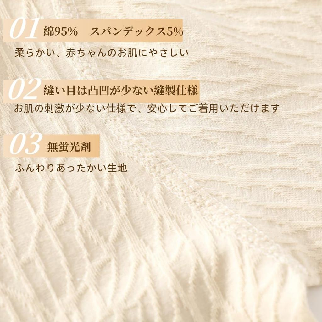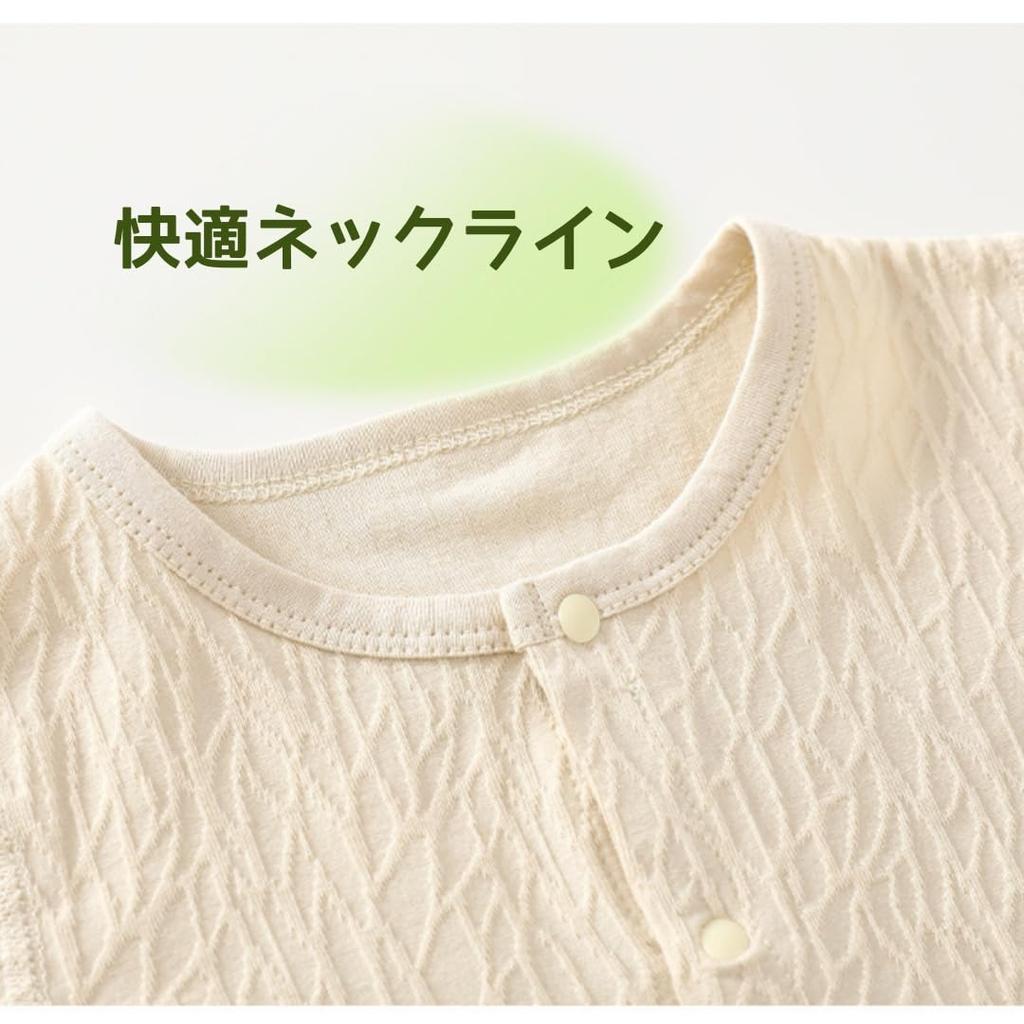"Легко переодевать" Кнопки-застежки полностью расстегиваются, и комбинезон можно легко надеть целиком, нежно обернув вашего малыша. Также легко переодевать вашего ребенка и менять ему подгузники. Его можно носить как домашнюю одежду, когда вы остаетесь дома, и как нижнее белье под уличную одежду, такую как комбинезоны, когда выходите на улицу.