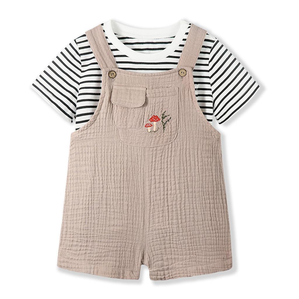 Детская одежда Летний комплект комбинезонов с коротким рукавом Детская одежда Комбинезоны для мальчиков и девочек Хлопковая марля Вышивка Бордюр Милый 80 90 [Volunboy] Футболка 2 предмета