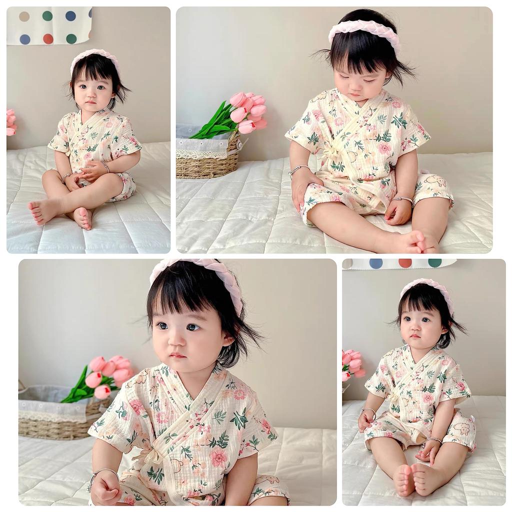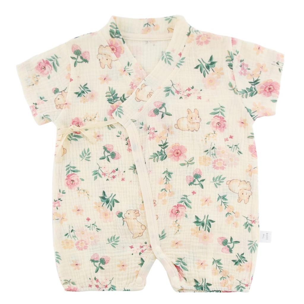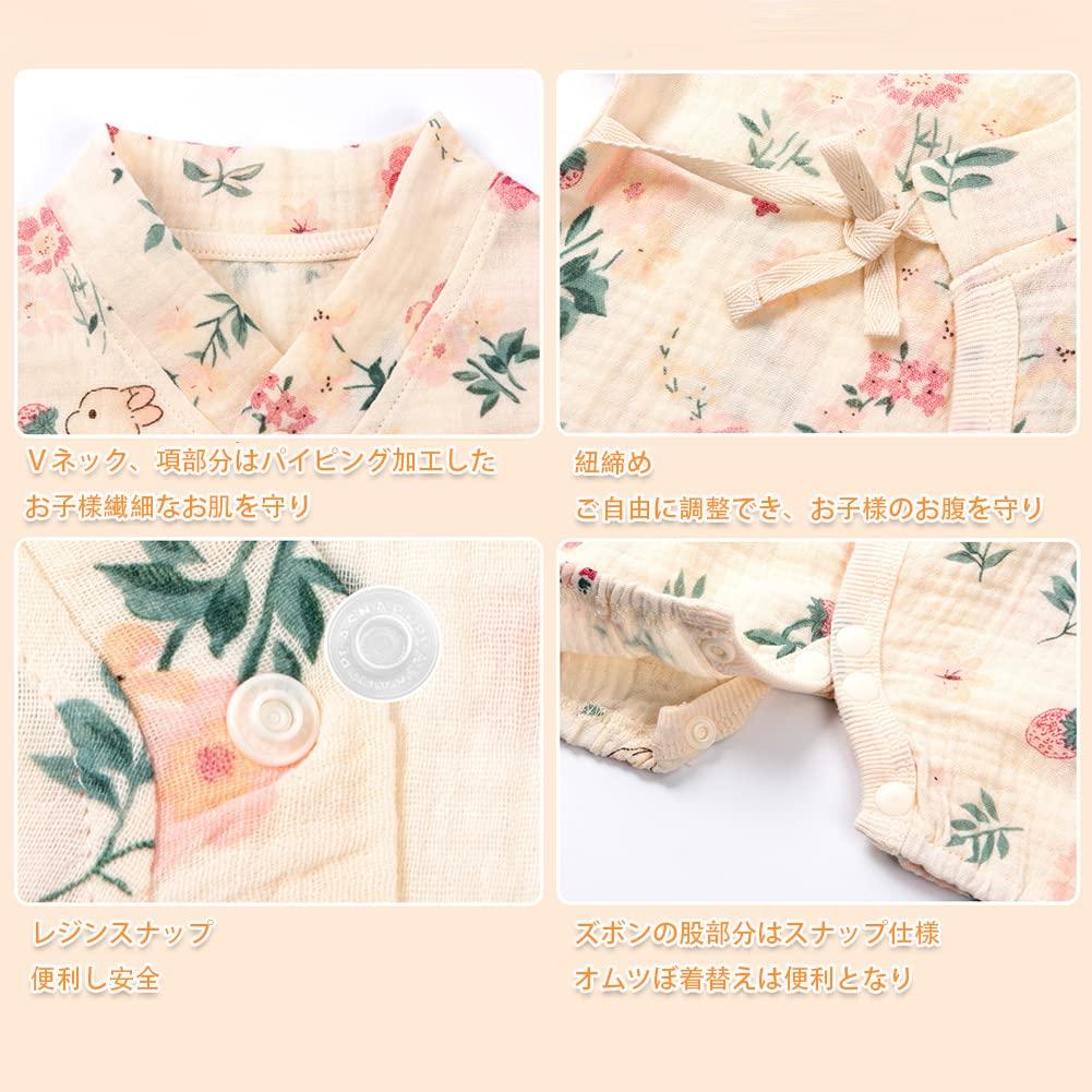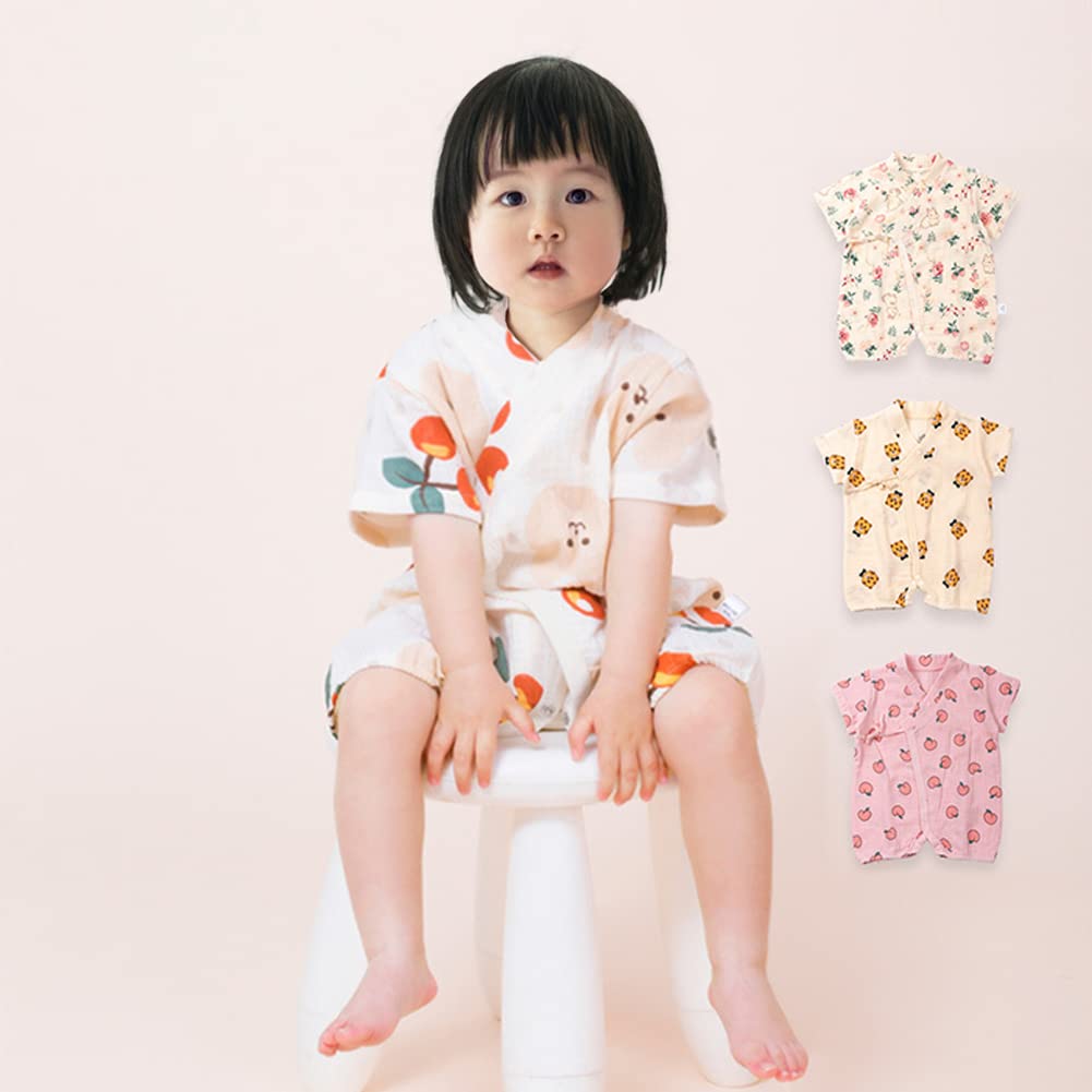 Милый детский комбинезон из марлевого хлопка. Гибкий и дышащий, это идеальный комбинезон для малышей. Конструкция с кнопками и кулиской позволяет легко менять подгузники. Желаю вам веселого и комфортного лета. Это также полезный предмет для детских праздников.. Его можно использовать для памятных фотосессий, первого фестиваля, первой трапезы, посещений храма, фестивалей Обон и других мероприятий.