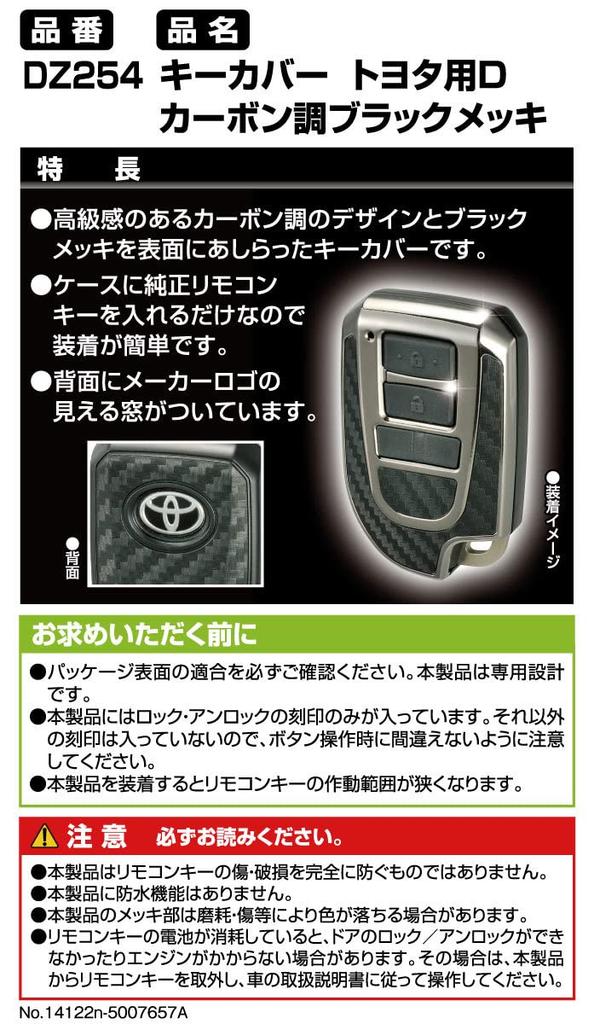 CARMATE Чехол для ключа автомобиля Toyota D Плакированный x Под карбон Hiace Spade Porte H70 x Ш45 x Г20 Под карбон Плакированный DZ254 (мм)