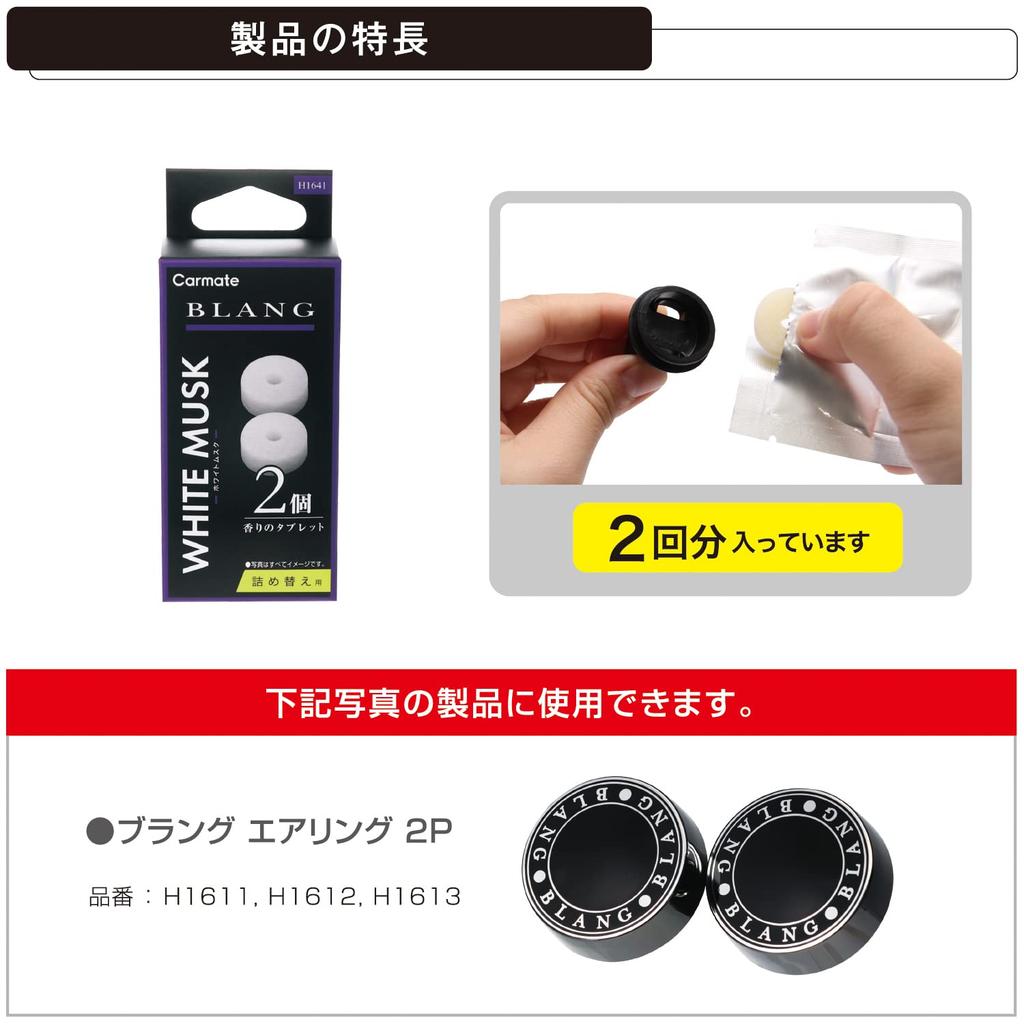 CARMATE Дезодоратор для автомобиля Освежитель воздуха Крепление на кондиционер Сменный блок Таблетки Blang Air Белый мускус H1641 2 шт.