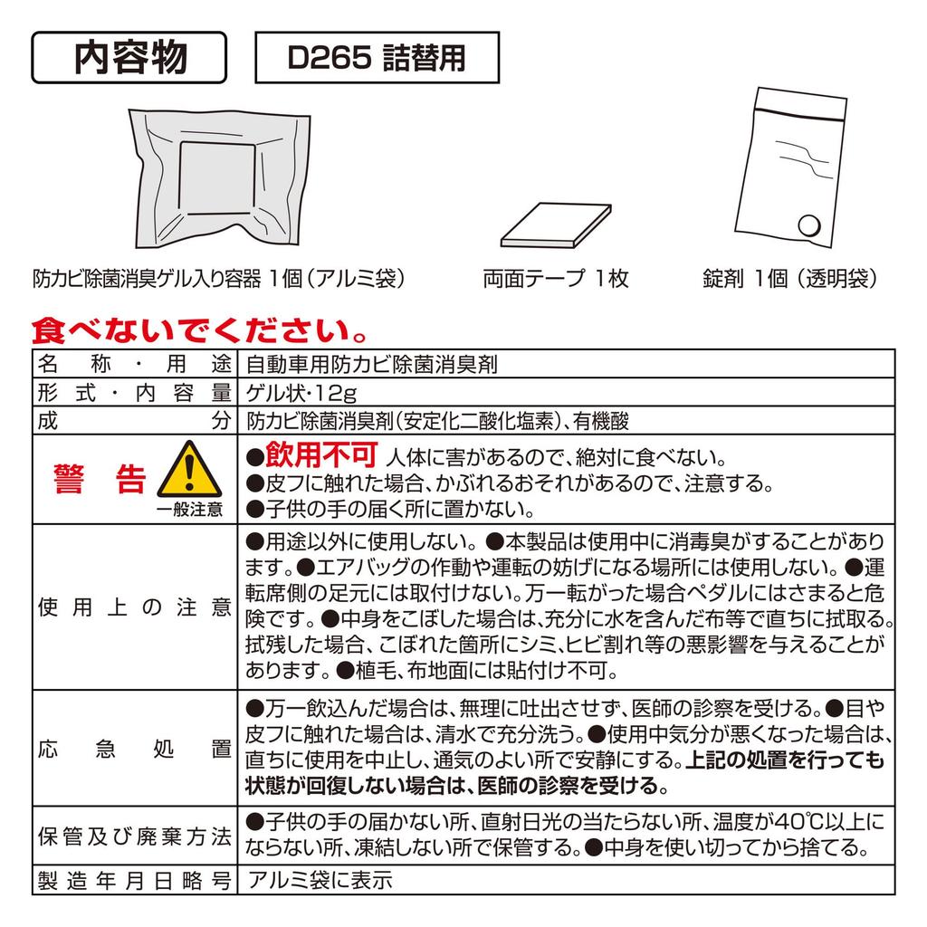 CARMATE Дезодоратор для автомобиля Премиум Стабилизированный диоксид хлора Действует 90 дней D266 Против плесени, Антибактериальный, Dr.DEO Тип с креплением на ножку/Заправка