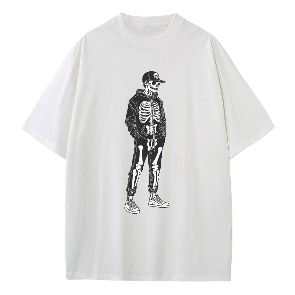 Летняя свободная футболка Хлопок С открытыми плечами Унисекс Топ Графическая футболка с принтом черепа Дышащий принт Унисекс Дизайнерская одежда