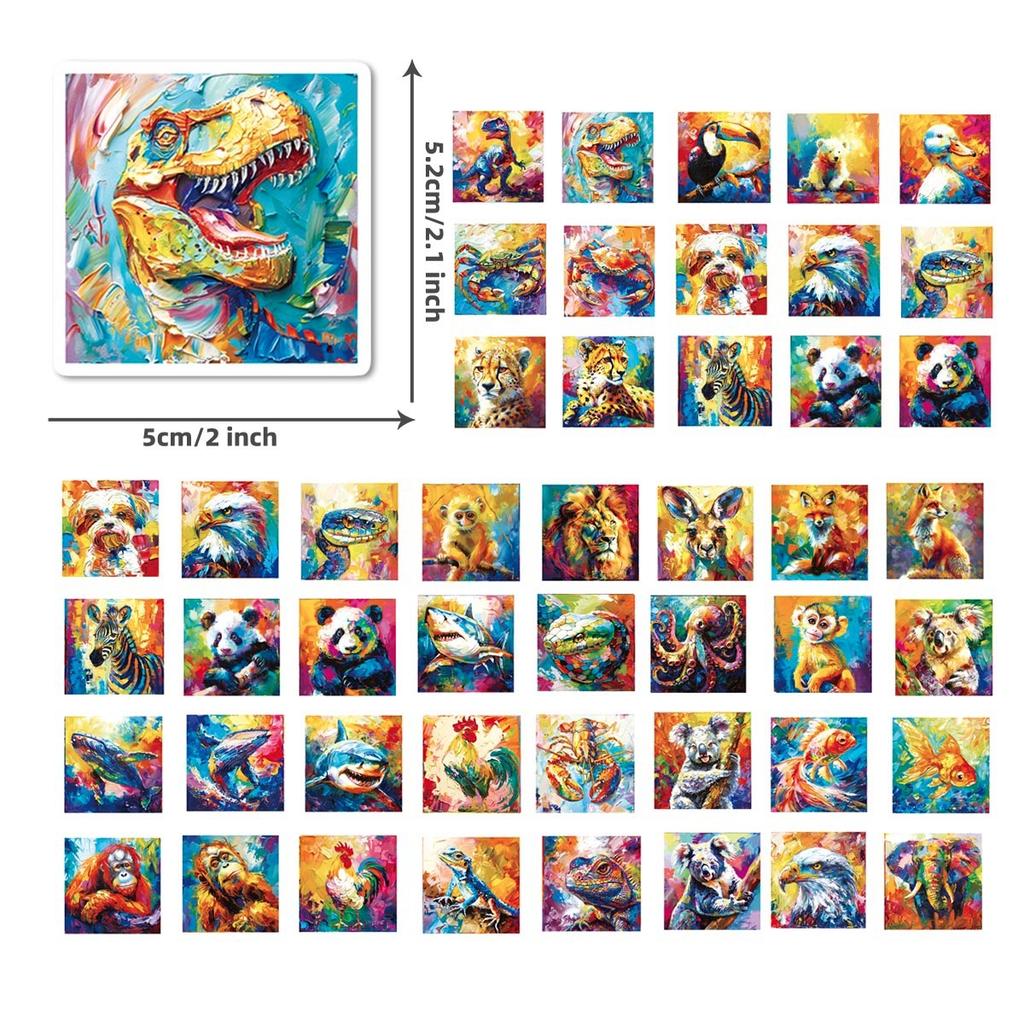 Набор из 50 наклеек с животными, нарисованных масляной краской, детские милые наклейки для DIY, наклейки для чемодана