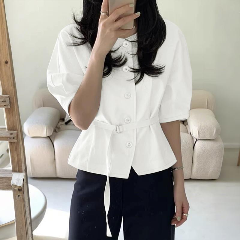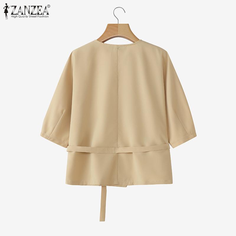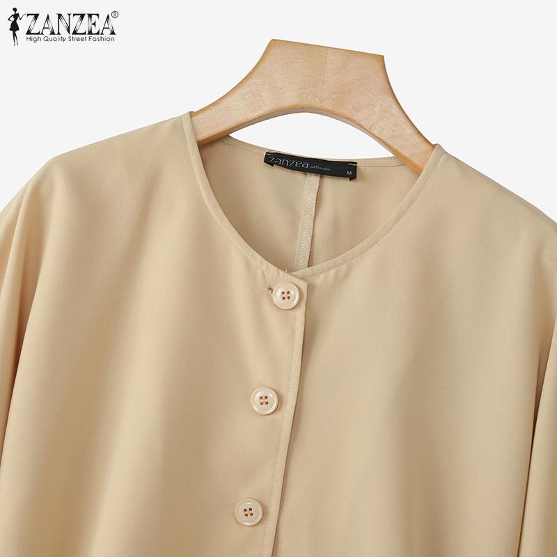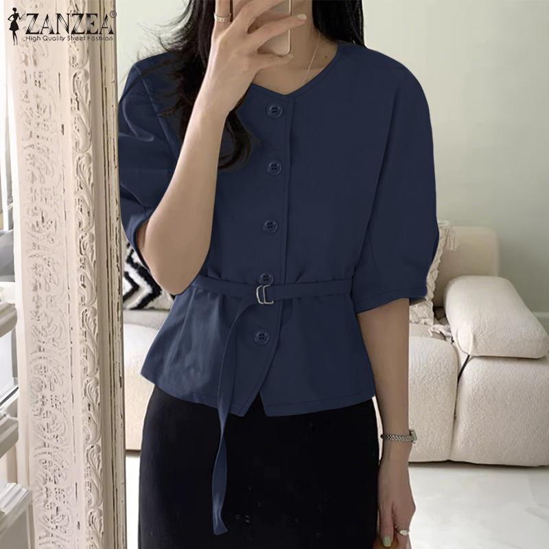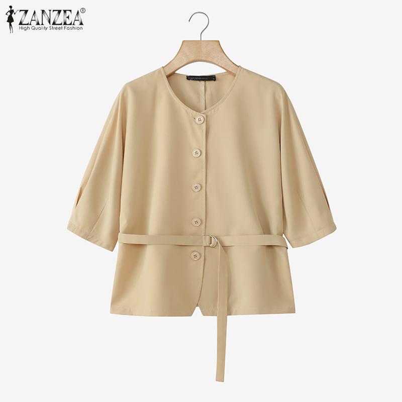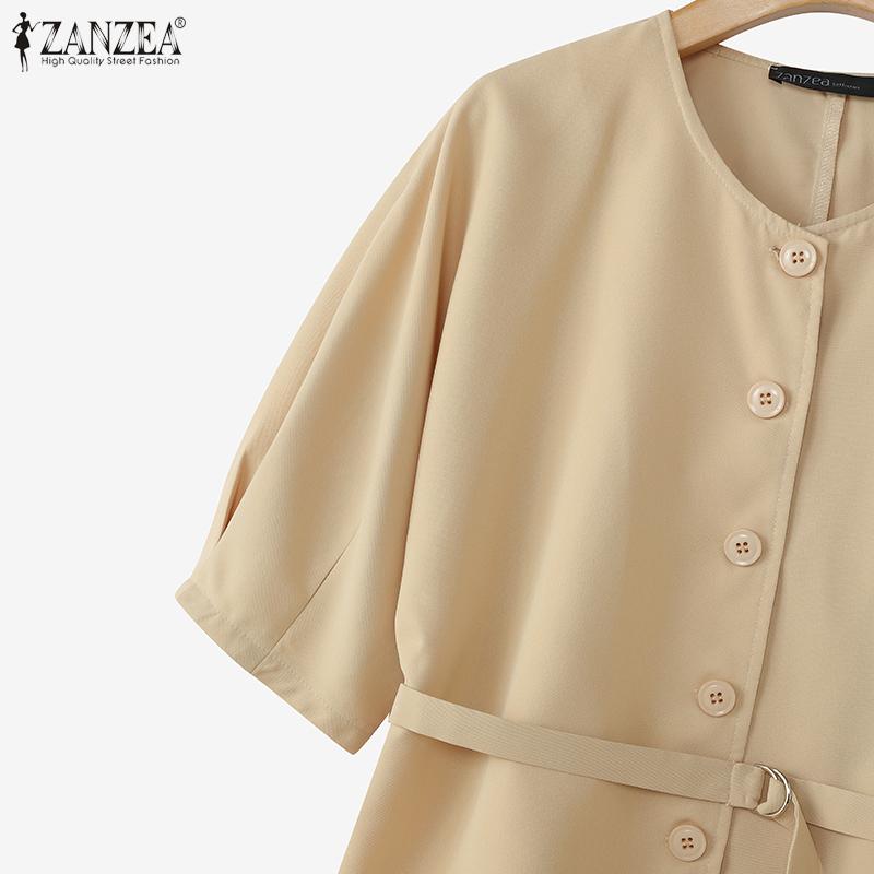 ZANZEA Женская повседневная летняя свободная блузка с круглым вырезом и коротким рукавом