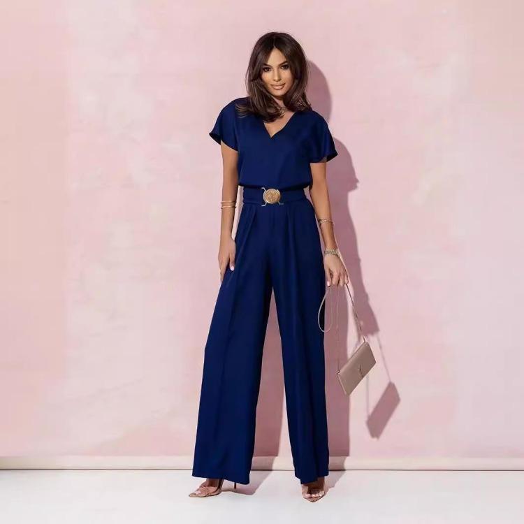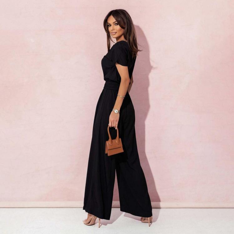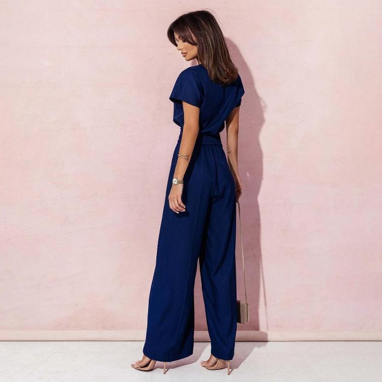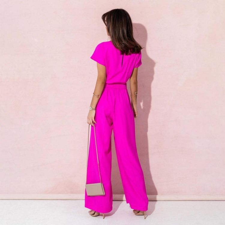 Комбинезон в горошек с широкими брюками, сексуальный, слим-талия, короткий рукав, вырез долман, однотонные брюки