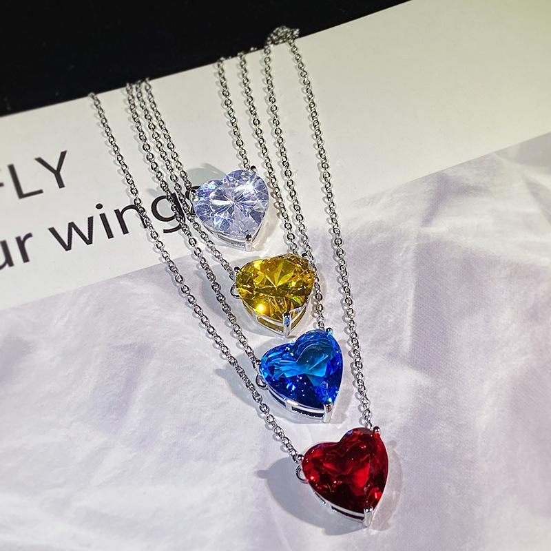 925 Стерлинговое серебро Короткое ожерелье простое Сердце Драгоценный камень Изумруд Бриллиант Рубин Аквамарин Белое золото Ожерелье Женские украшения Подарок для вечеринки