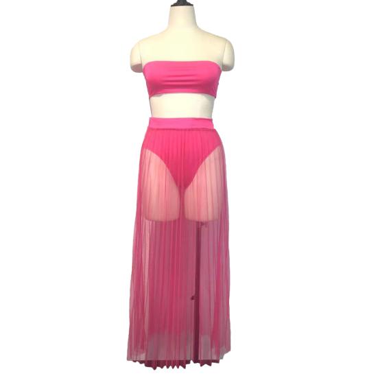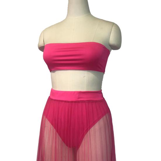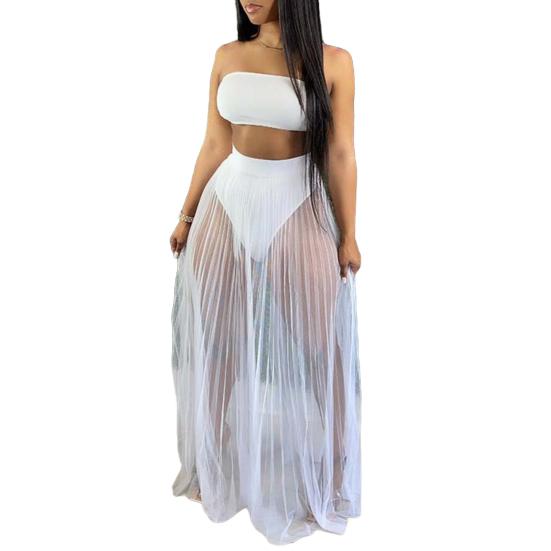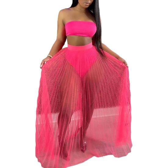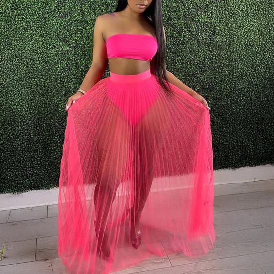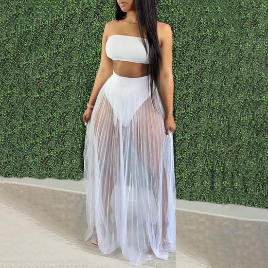 Элегантный дизайн: Окунитесь в изысканность с сексуальным жилетом в сочетании с плиссированной длинной юбкой из сетки, излучая очарование и элегантность в простом, но соблазнительном однотонном ансамбле.