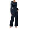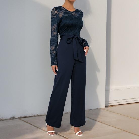 Элегантность в стиле casual: Создайте повседневный, но в то же время шикарный образ с этим женским комбинезоном с круглым вырезом и однотонными кружевными вставками.. Его простота излучает элегантность, что делает его универсальным дополнением к вашему гардеробу для различных случаев.
