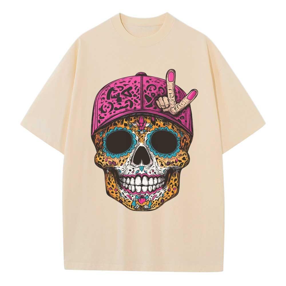 Летняя свободная футболка Хлопковая футболка с рисунком Дизайнерская одежда Леопардовый принт Рисунок черепа Плечо Ретро Нейтральный топ Футболка