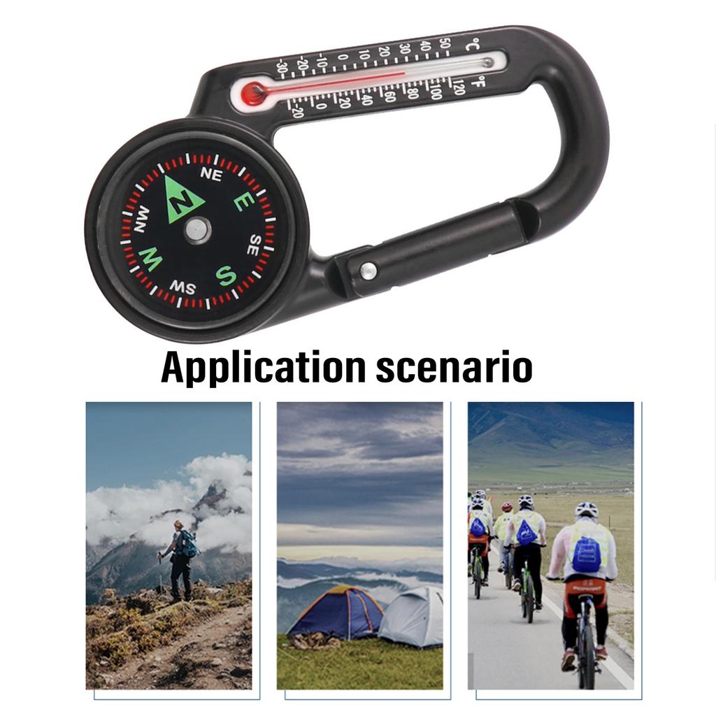 Мини-компас с карабином 3 в 1, направляющий термометр, брелок для ключей для походов, кемпинга, скалолазания, охоты, путешествий
