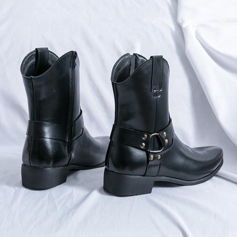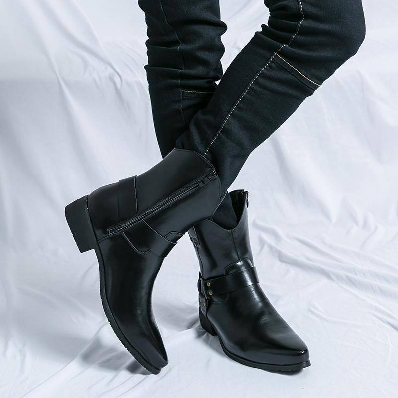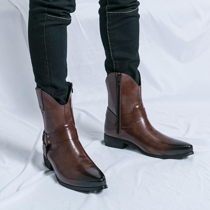 Мужские ковбойские ботинки с острым носком, повседневные ретро-платья, кожаные ботинки на молнии, мужские полусапоги больших размеров