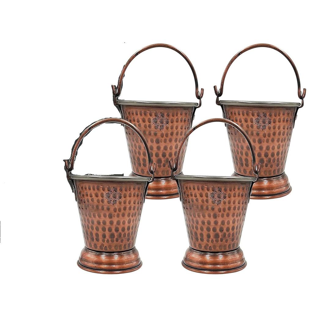 Стальное Медное Чеканное Дизайн Античный Темный Тон Ведро, Сервировочная посуда и Посуда для Дома, Отеля и Ресторанов, Объем-300 мл, Набор из 4