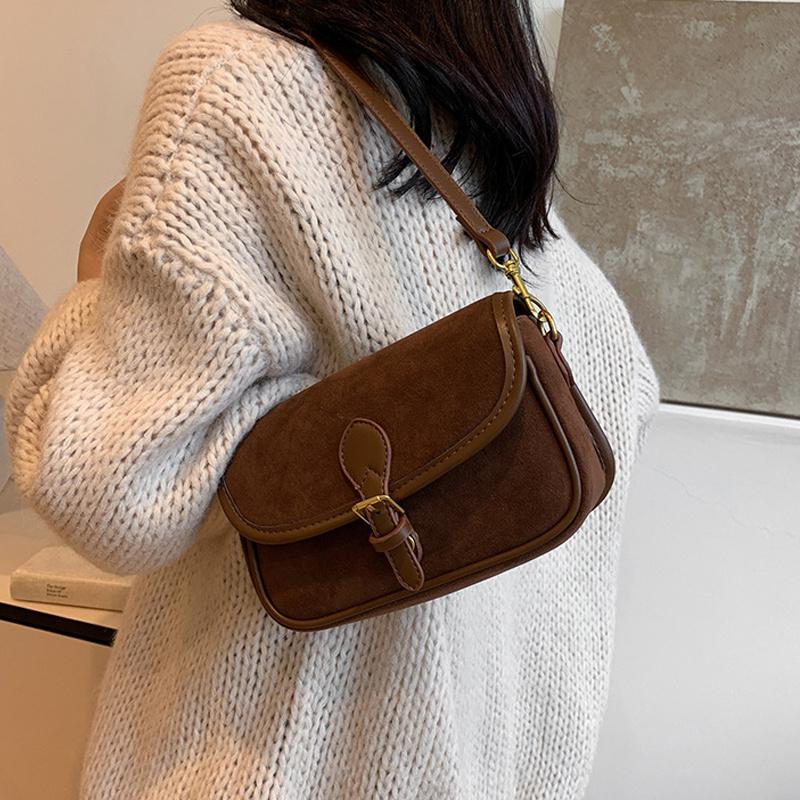 Зимние винтажные женские сумки кроссбоди, модные сумки через плечо и подмышку с клапаном из искусственной замши, однотонные универсальные женские сумочки AVE