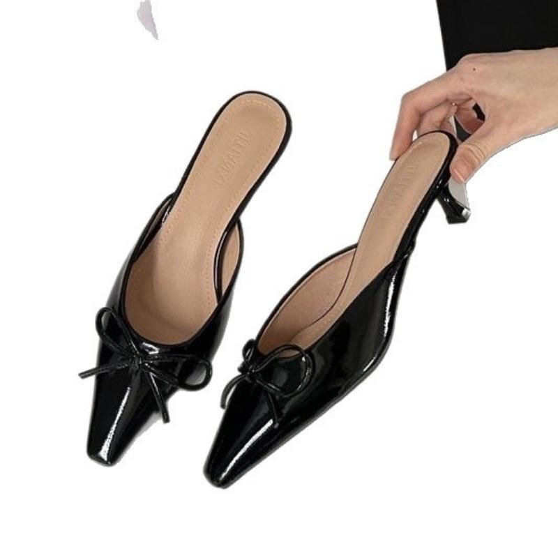 Новые туфли на среднем тонком каблуке с закрытым носком, полушлепанцы, туфли на высоком каблуке, сандалии с одним пальцем