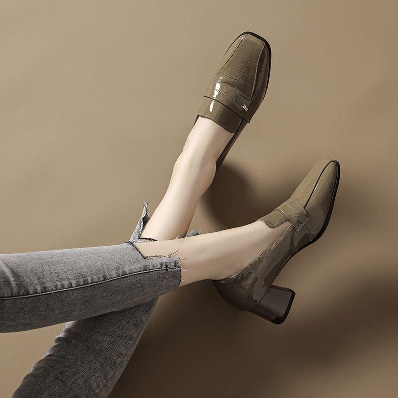 Женская летняя обувь Офисные туфли на толстом каблуке с квадратным носком Зеленые туфли на блочном каблуке для женщин 2025 Лоферы 39 на распродаже Популярные Нескользящие